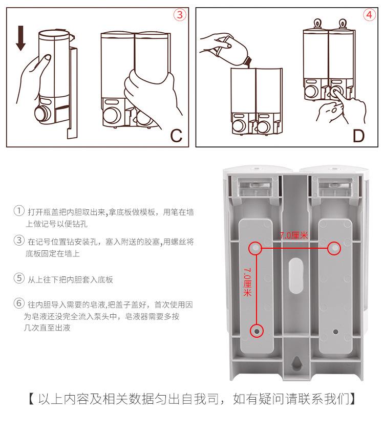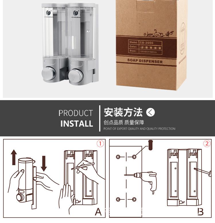 Dispensador de Botella de Champú, Gel de Ducha y Jabón Montado en la Pared del Hotel Chuangdian Caja de Presión para Baño Desinfectante de Manos
