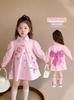 Vestido de niña de primavera y otoño, estilo occidental, de manga larga, con empalme, estilo coreano, floral, de princesa.