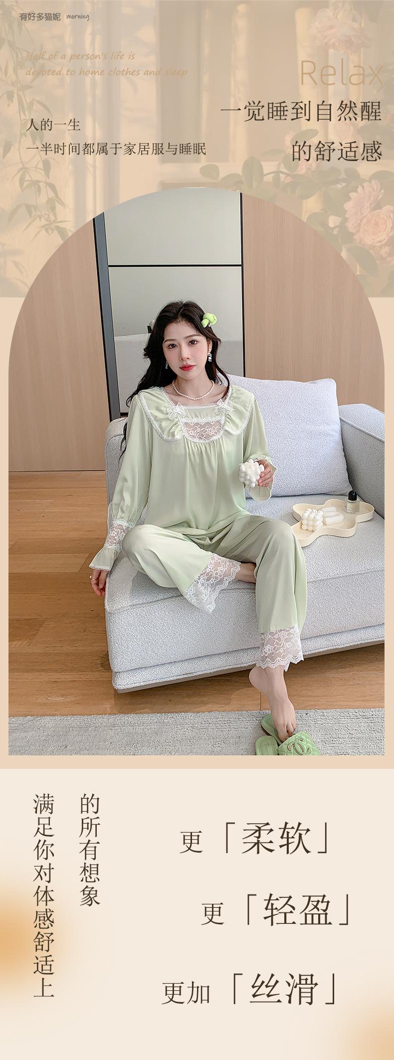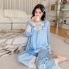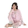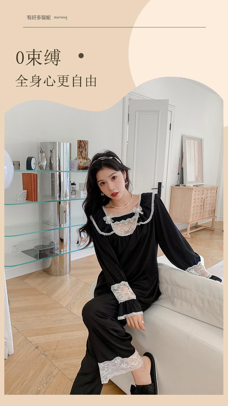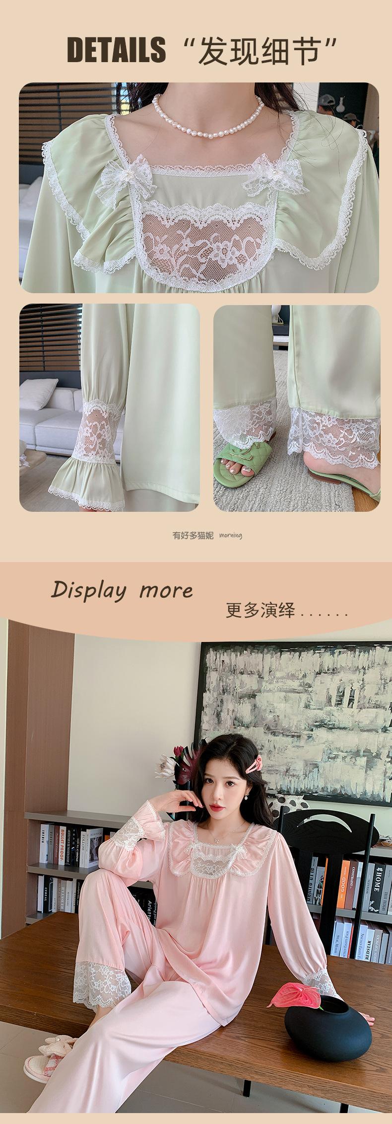 Pijama de Seda de Hielo Holgado de Manga Larga de Encaje de Estilo Francés Sexy para Primavera y Otoño para Mujer, Conjunto de Ropa para el Hogar de Estilo Perezoso