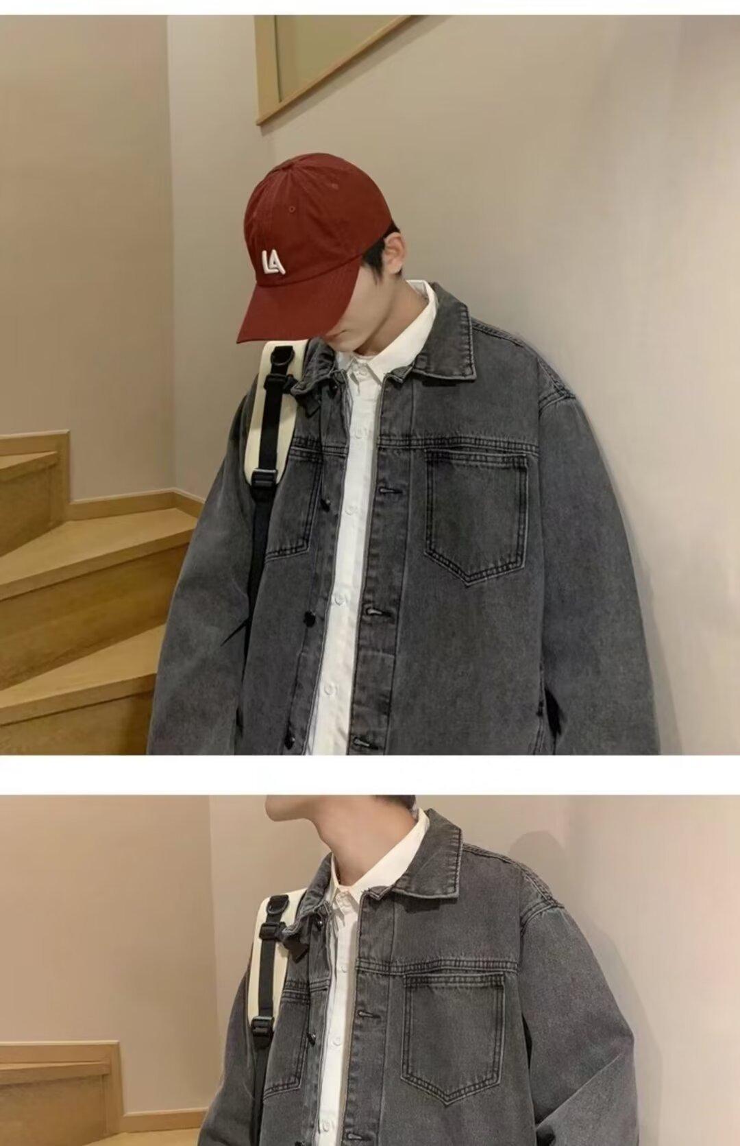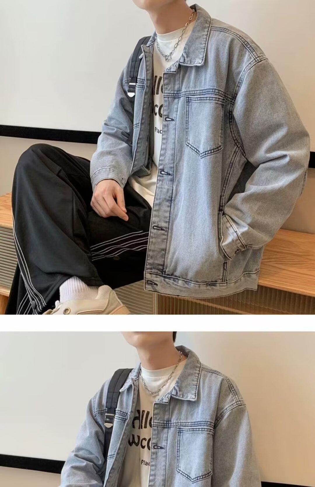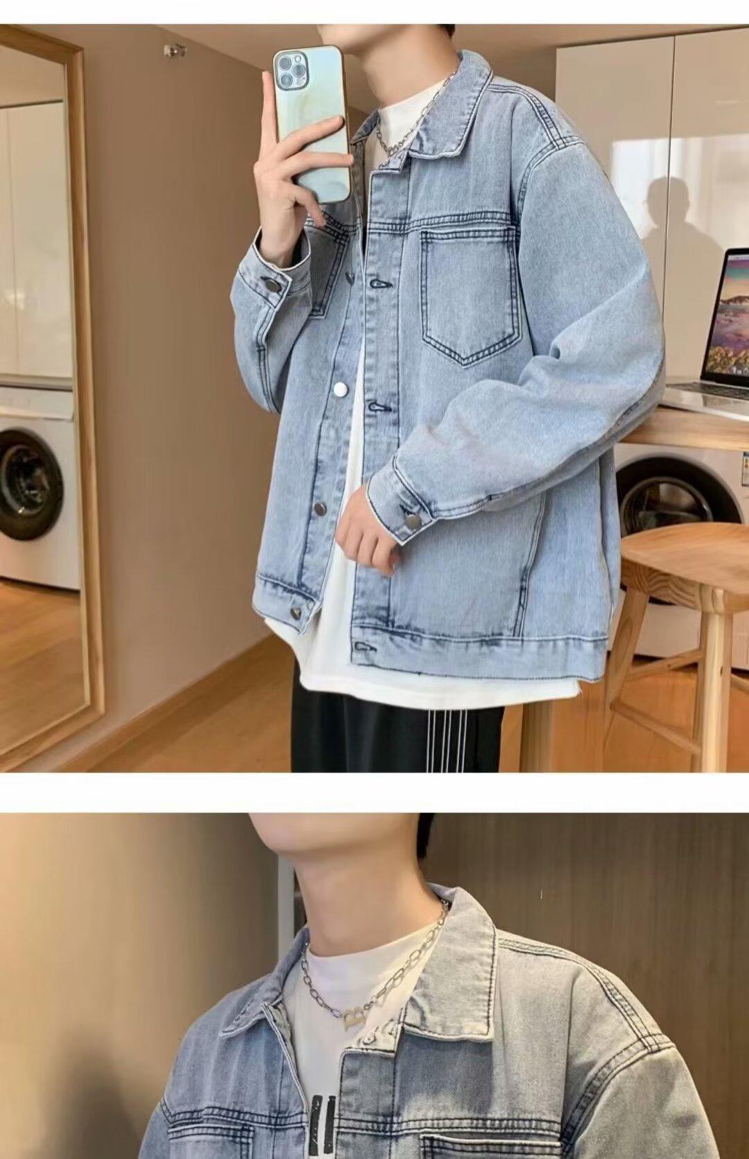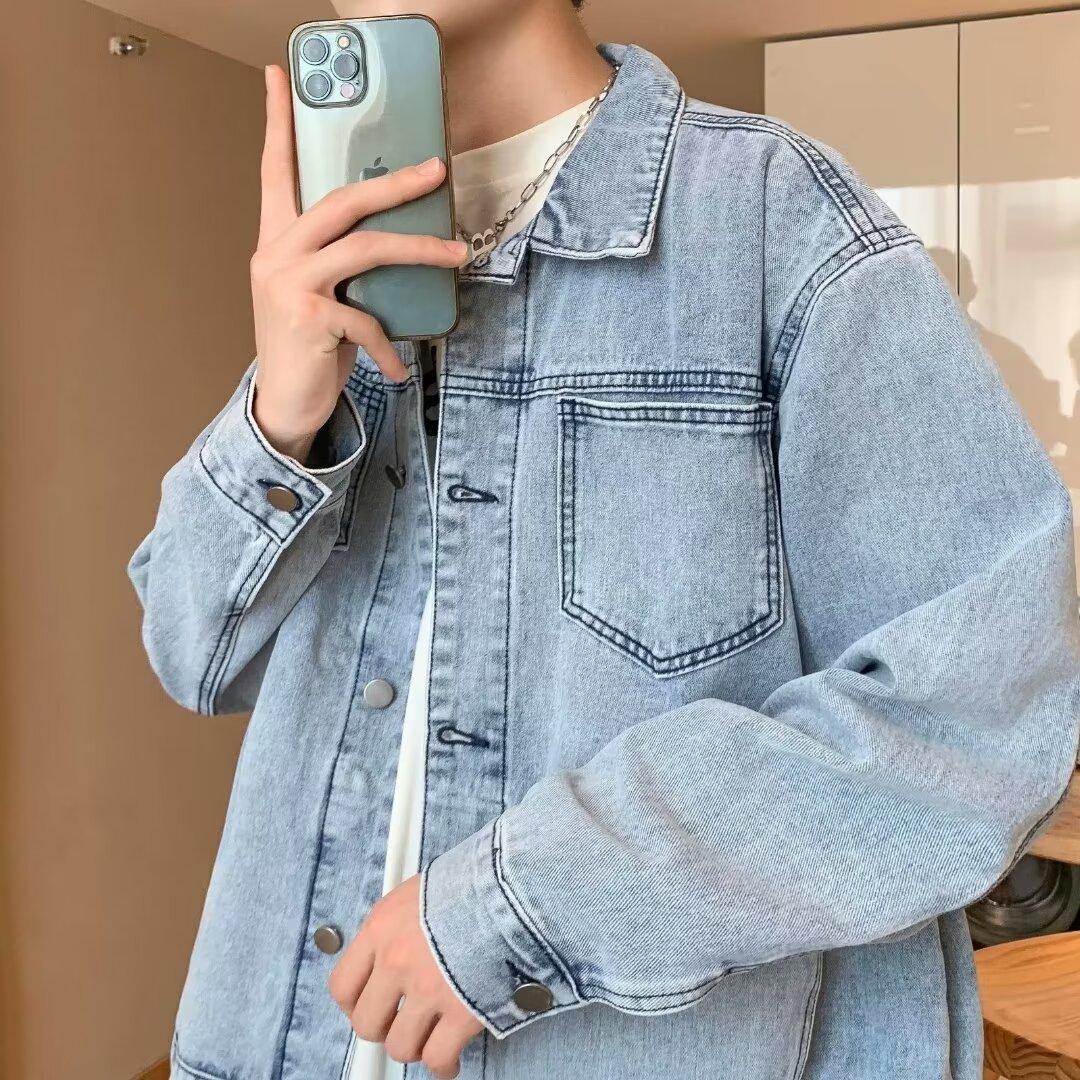 Chaqueta de hombre chaqueta de hombre primavera y otoño estilo coreano moderna retro holgada solapa casual corta ropa de trabajo top de mezclilla