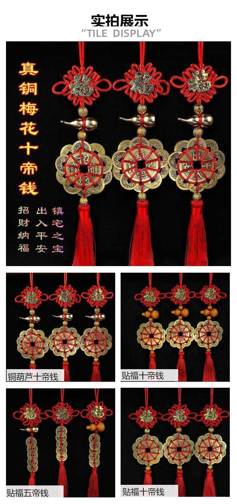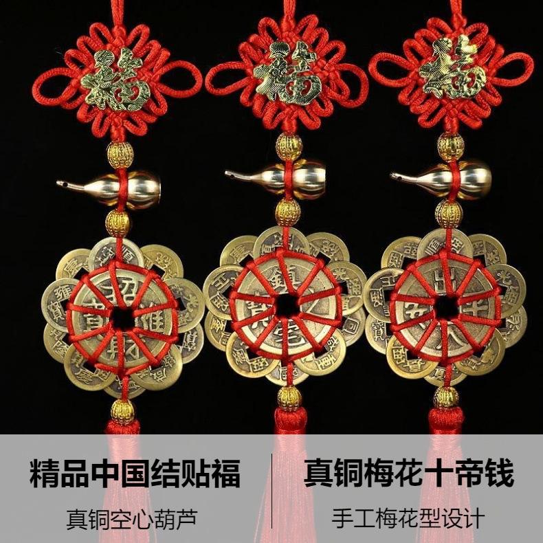 Nombre del Producto: Adhesivo Nudo Chino Fu Calabaza de Cobre Flor de Ciruelo Colgante Monedas de Diez Emperadores