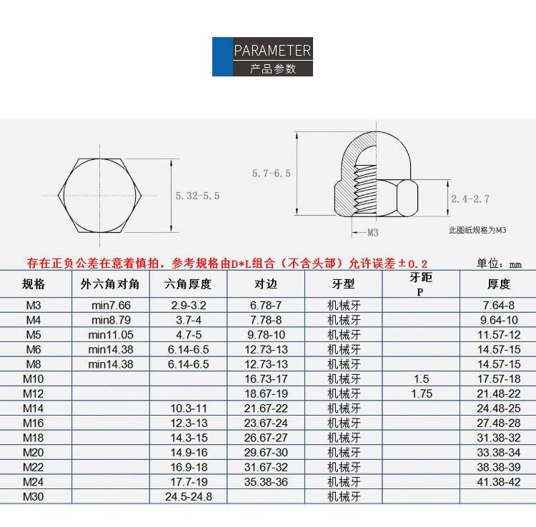 Tuerca ciega de acero inoxidable 304 M3-M30, tuerca ciega decorativa DIN1587