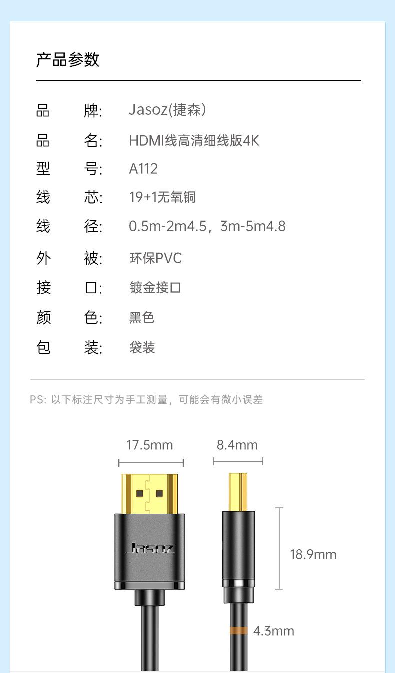 Cable HDMI HD versión 2.0 4K portátil, suave y delgado, para TV, decodificador, monitor, proyector, cable de computadora