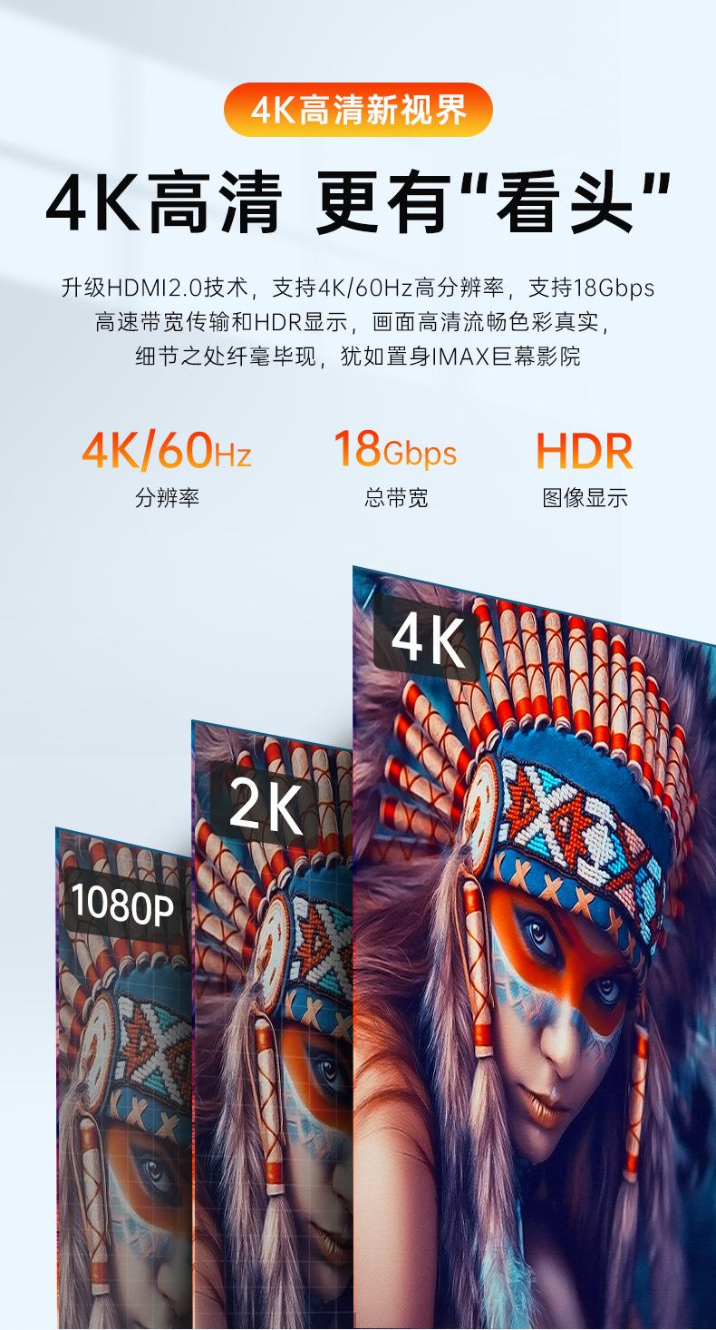 Cable de extensión HDMI versión 2.0 4K HDMI macho a hembra de cobre libre de oxígeno de 19+1 núcleos para computadora TV HD