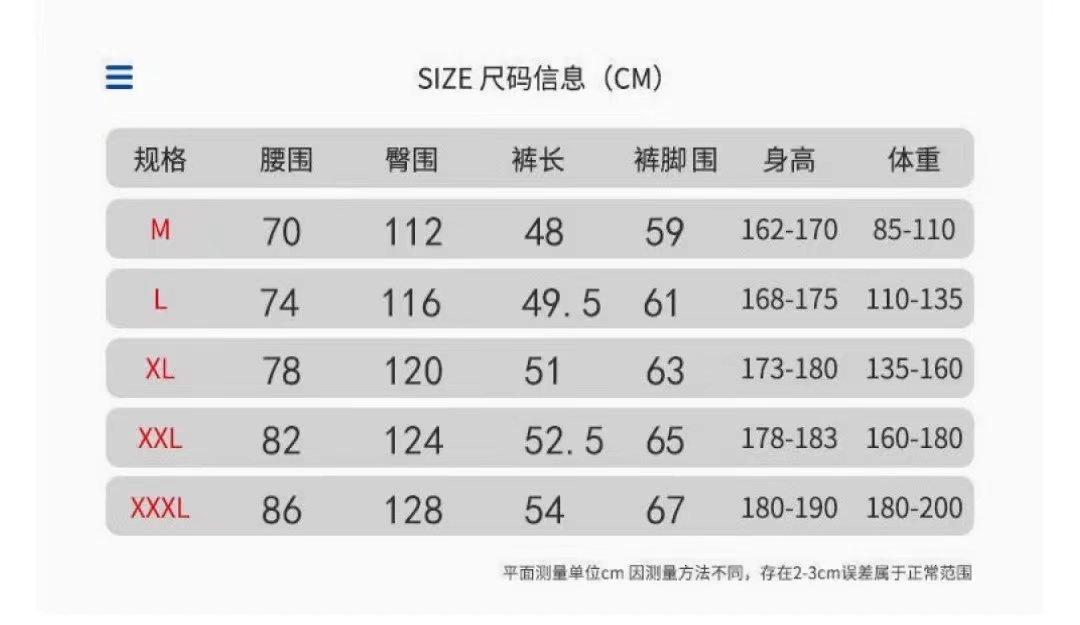 M, L, XL, 2XL, 3XL, 4XL, 5XL