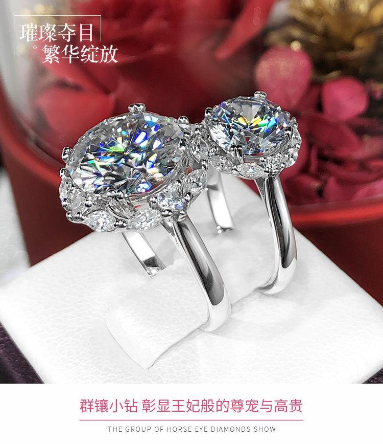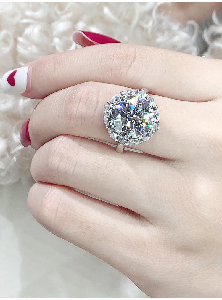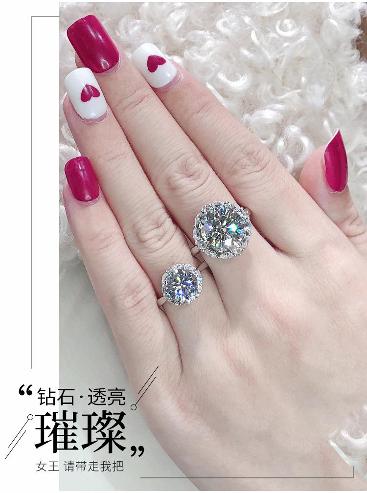 | Anillo de lujo ligero japonés con diamantes de imitación de moissanita de 5 quilates y un gran huevo de paloma de la popular celebridad de Internet Douyin, Queen's |
