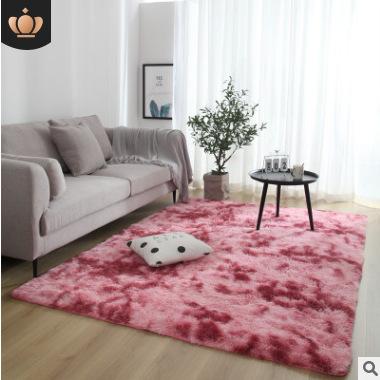 Alfombra nórdica de pelo largo con degradado teñido anudado para dormitorio, sala de estar, mesa de centro de una sola pieza con borde transfronterizo, cubierta completamente rectangular