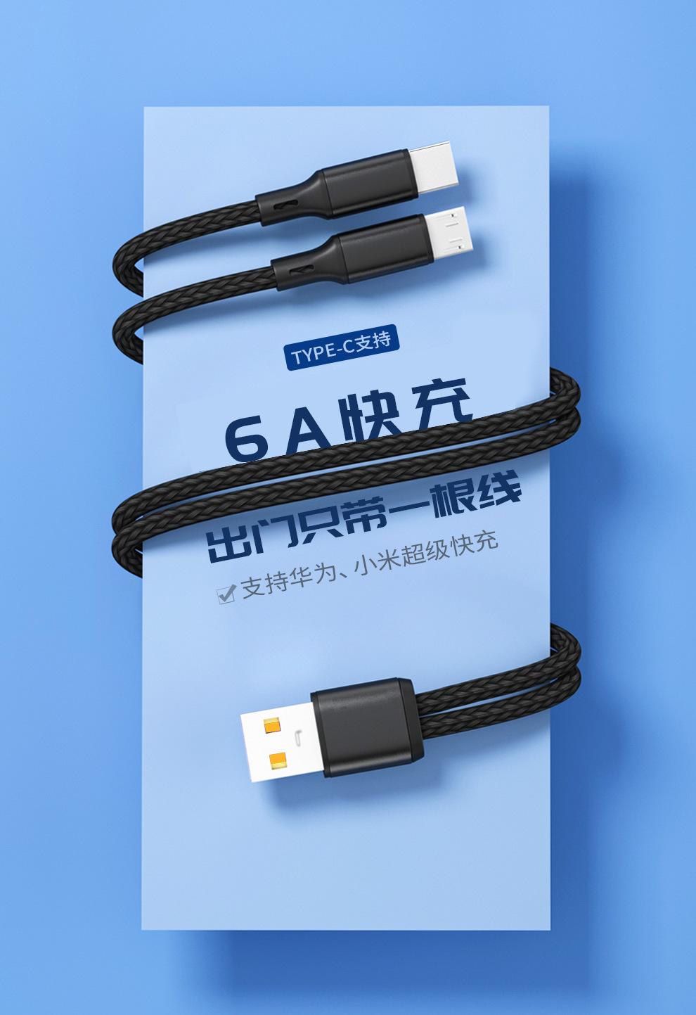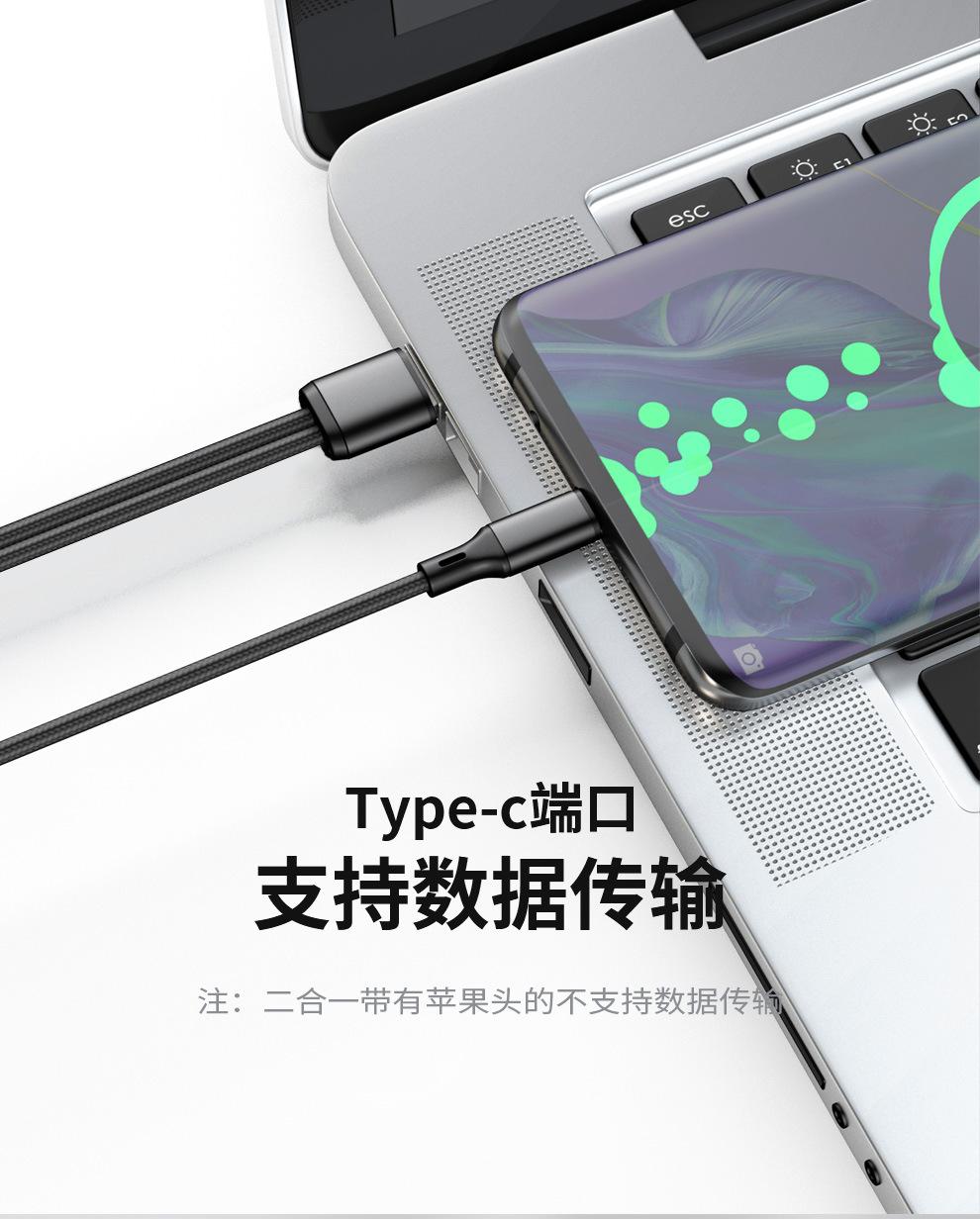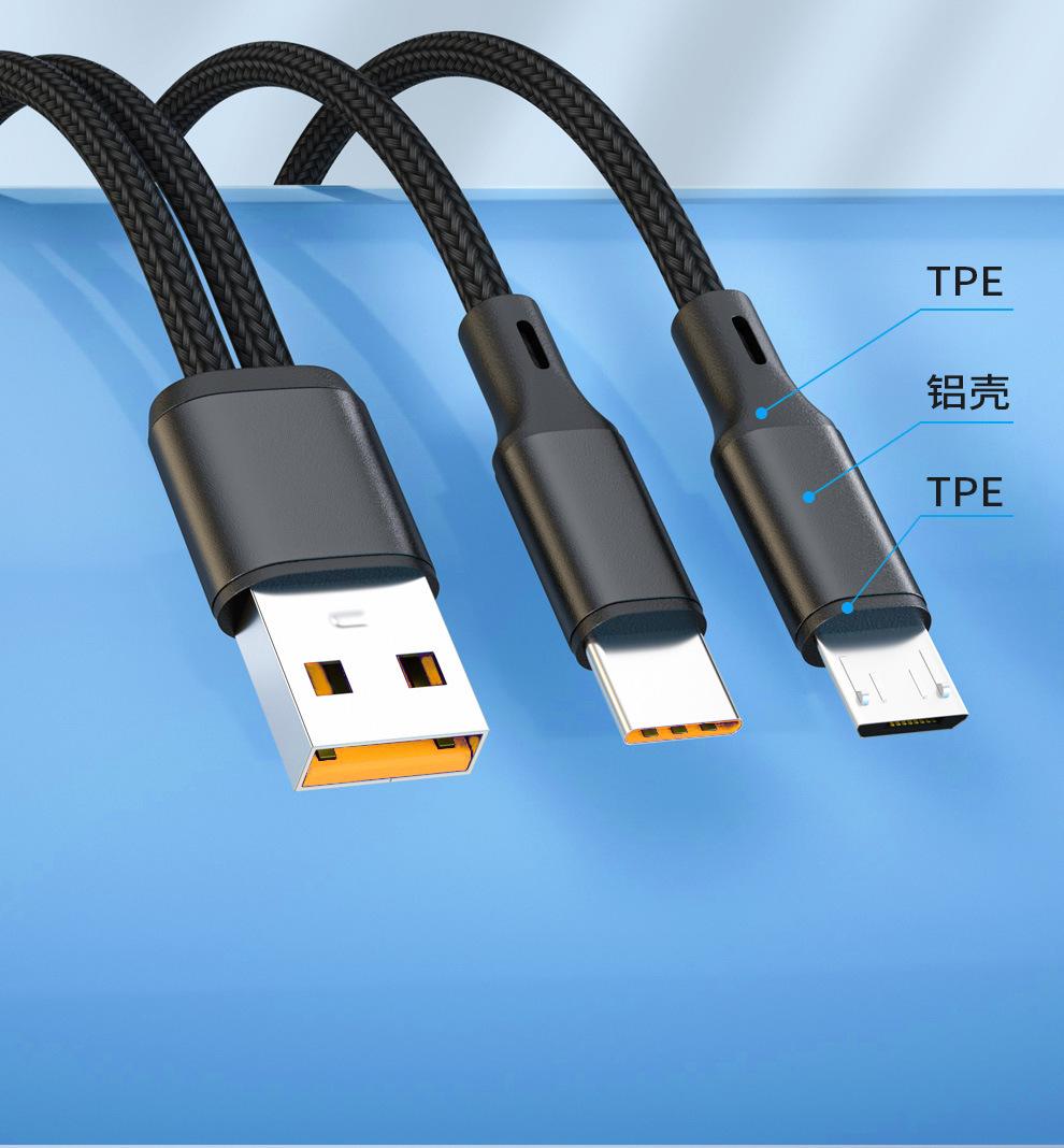 Cable de datos 2 en 1 para Android/2-Tipo-C/Apple car 1-2 línea de carga rápida línea 6A