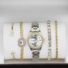Black-faced gold strap watch + four gold bracelets + box, White-faced gold strap watch + four gold bracelets +...