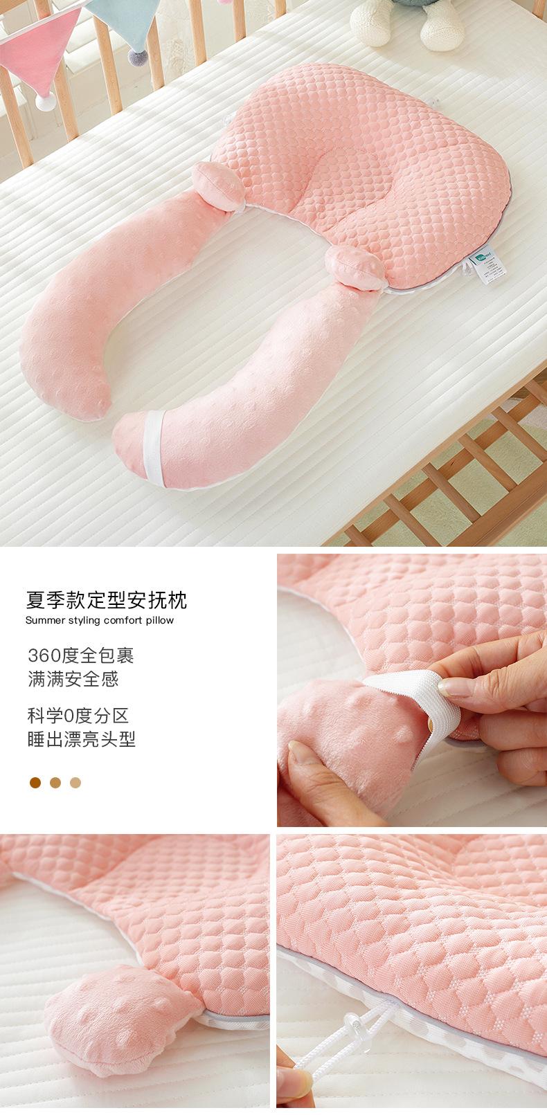 Almohada reconfortante para bebé almohada para dormir de lado anti-sobresaltos almohada transpirable para dar forma al bebé ajustable con cordón corrector de cabeza anti-deformación cabeza plana
