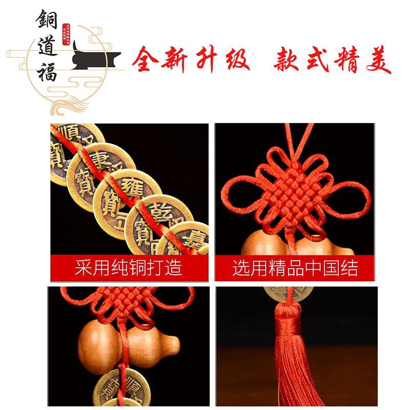 Accesorios Colgante de calabaza de dinero de los Cinco Emperadores con nudo chino, cristal Yuanbao, base de madera fragante, pequeños adornos