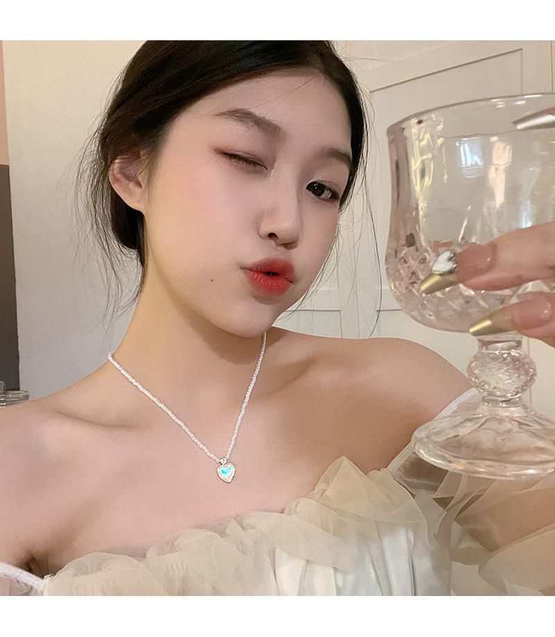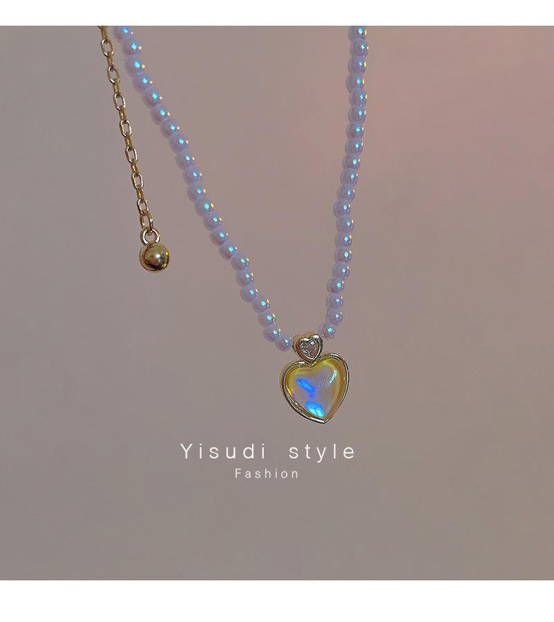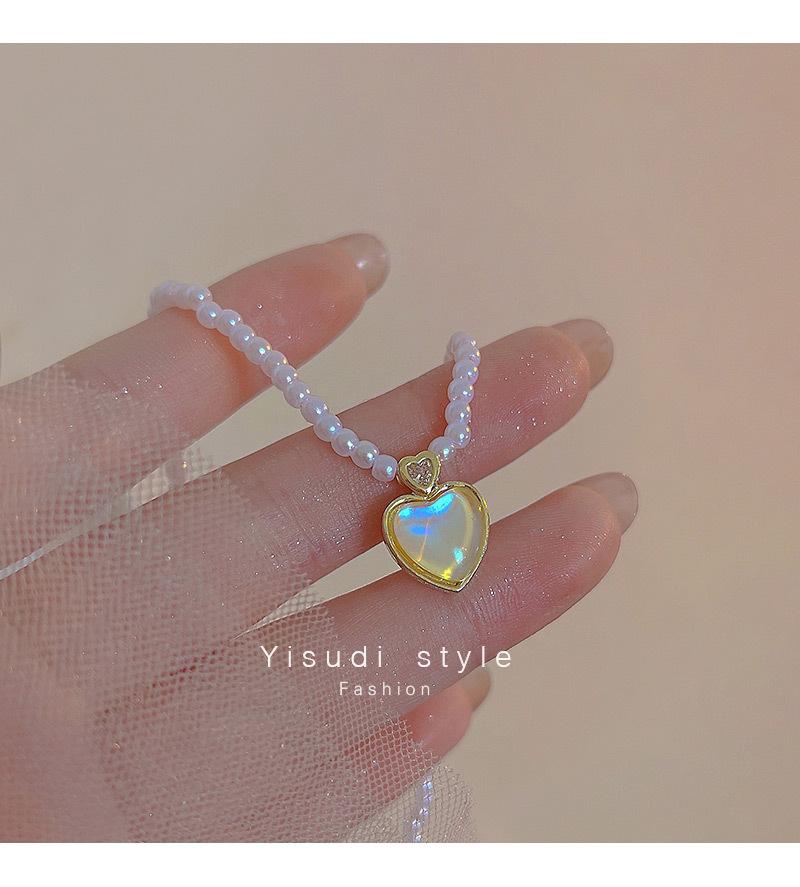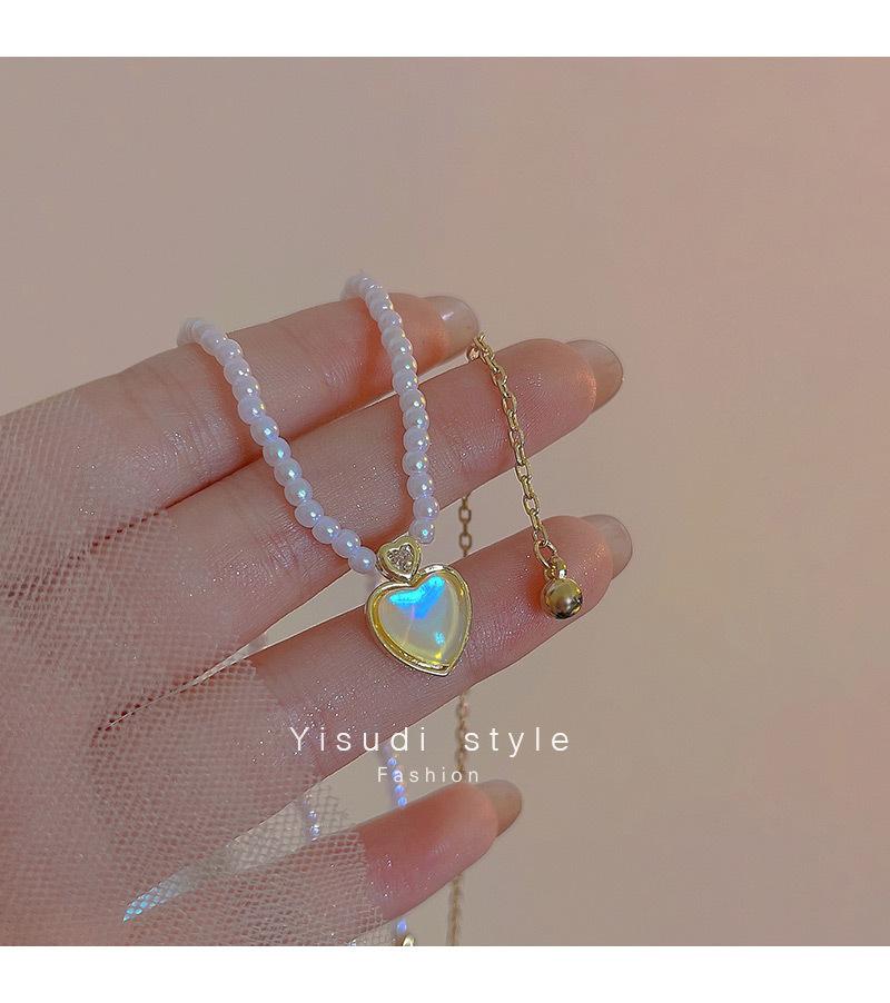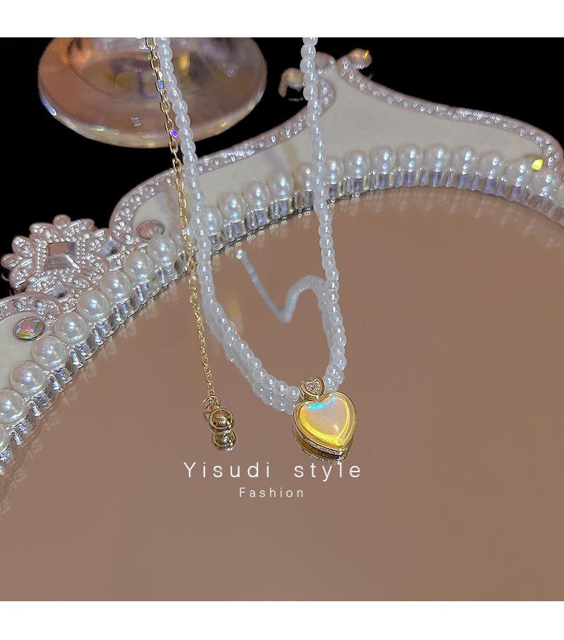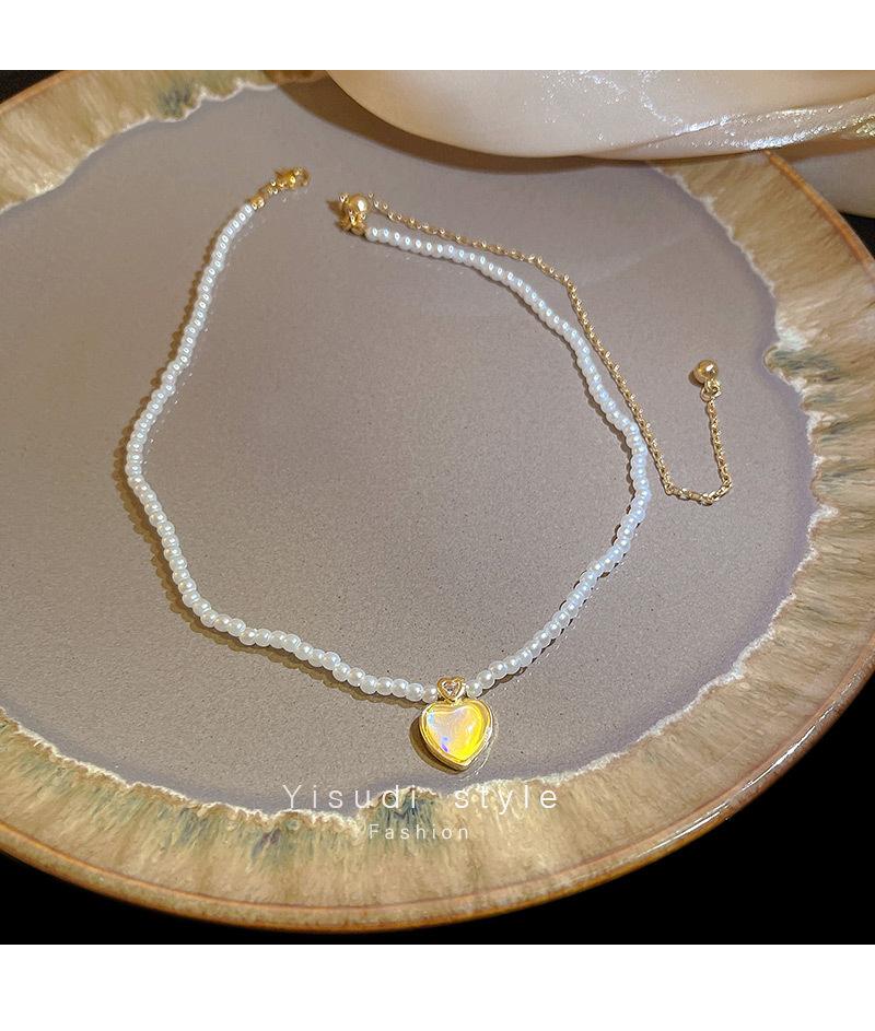 Collar de cuentas con colgante de amor colorido para mujer, diseño de nicho retro de lujo ligero, collar de perlas, cadena para clavícula de estilo frío