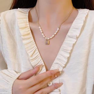 Collar de Perlas Barrocas Coreanas Diseño Nicho para Mujer Colgante de Cubo de Zirconia Cadena para Suéter Lujo Ligero Collar de Personalidad