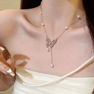 Collar de Perlas de Mariposa Super Hada para Mujer Temperamento de Lujo Ligero Francés Cadena para Clavícula de Alta Gama Estilo Frío Nicho Collar Personalizado