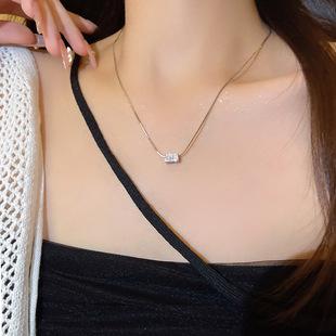 Cadena cuadrada de hueso de serpiente con circonitas micropavé para mujer, estilo frío, de alta gama, collar versátil, accesorios de temperamento de nicho simples al por mayor