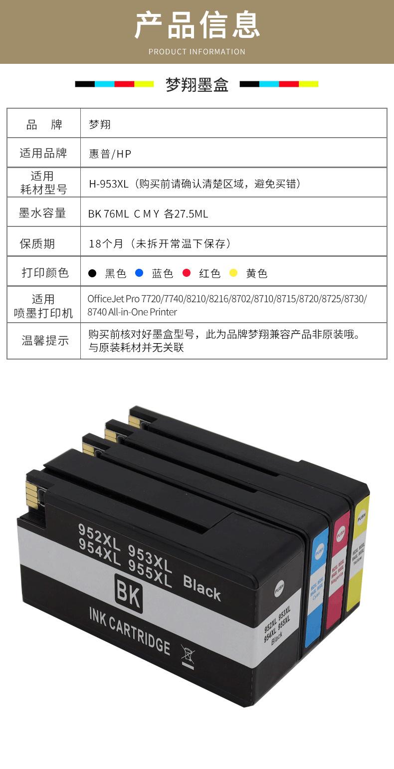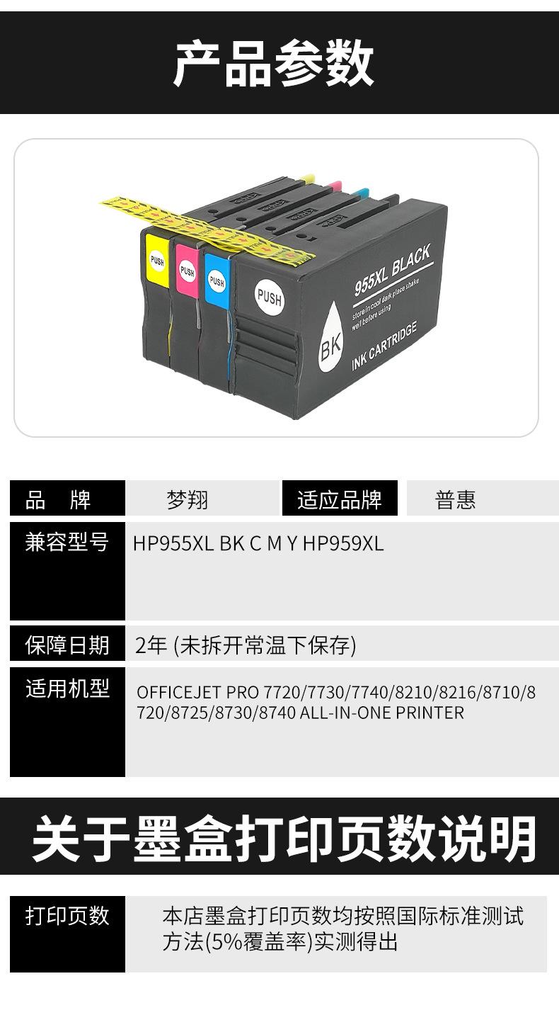 Recordatorio cálido: Dado que los siguientes modelos son adecuados para diferentes regiones, son aplicables diferentes modelos de cartuchos de tinta. Por favor, confirme si su cartucho de tinta original coincide con el modelo antes de realizar el pedido, o consulte al servicio de atención al cliente para proporcionar el modelo que necesita. Si pide el modelo incorrecto, no realizaremos reembolsos ni cambios. Gracias por su cooperación. Marca: Mengxiang Adecuado para cartucho de tinta HP HP955 negro y color Compatible con cartuchos de tinta HP HP955XL HP959XL Compatible con modelos de cartuchos de tinta: HP955XL HP959XL Impresora multifuncional de inyección de tinta a color aplicable: impresora HP OfficeJet Pro 8210, Impresora Multifuncional de Formato Ancho HP OfficeJet Pro 7720 Impresora HP OfficeJet Pro 8216/8218, Impresora multifunción HP OfficeJet Pro 7740, Impresora multifunción HP OfficeJet Pro 8710, Impresora multifunción HP OfficeJet Pro 8720, Impresora multifunción HP OfficeJet Pro 8730, Impresora multifunción HP OfficeJet Pro 8740 Color: negro, azul, rojo, amarillo. Capacidad de tinta: BK 80ML CMY 30ML cada uno Papel A4 5% cobertura 1200 páginas en negro y 500 páginas a color Ofrecemos procesamiento OEM, gran cantidad y precio favorable. Vida útil: 2 años Embalaje: bolsa de vacío o caja de color. Servicio posventa: Este producto es un consumible compatible. Si presenta algún problema de calidad, puede devolverlo o cambiarlo. Los gastos de envío de la devolución correrán a cargo de nuestra empresa. Nuestra fábrica procesa principalmente cartuchos de tinta compatibles con Epson, Brother, Kodak, Canon, Lexmark y HP sin cabezal, sistemas de suministro continuo de tinta y procesamiento OEM. Podemos negociar grandes cantidades y descuentos. 【Instrucciones del paquete】 La imagen es solo como referencia. El embalaje es de plástico sellado y viene en una caja de color. Contiene un cartucho de tinta a prueba de golpes. Si no lo usa, no retire el sello. Se puede almacenar durante más de 2 años. 【seguro de calidad】