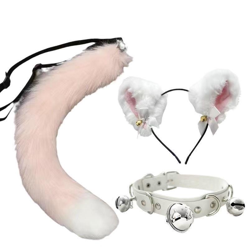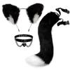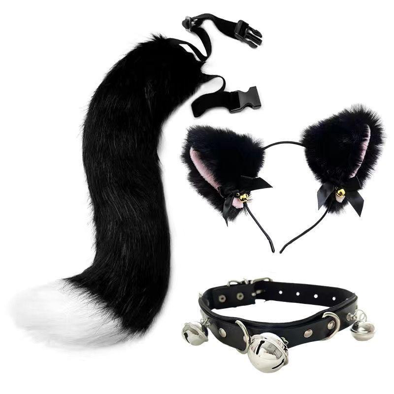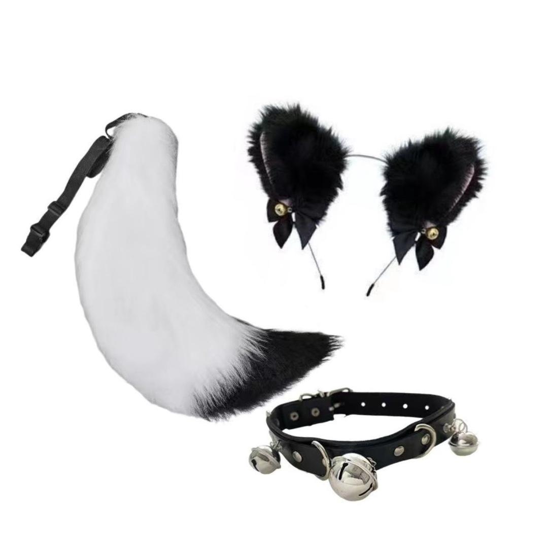 Diadema de felpa con orejas de gato y cola de gato, conjunto de accesorios para cosplay, traje de zorro