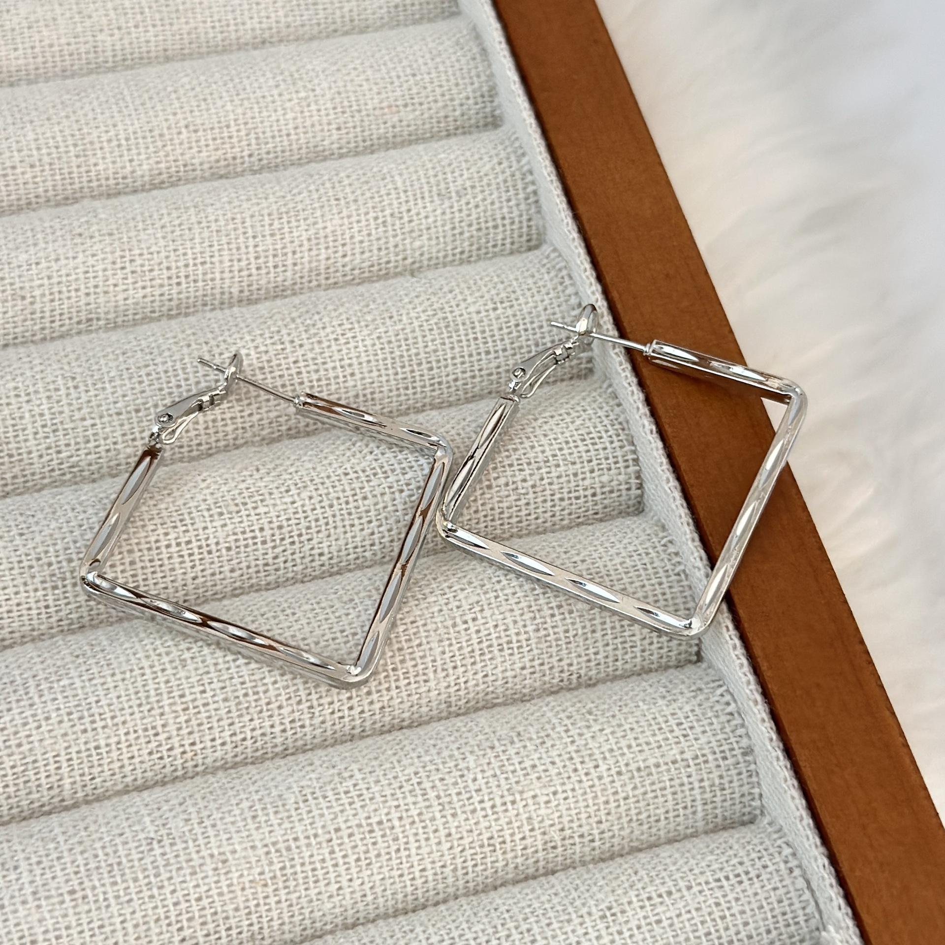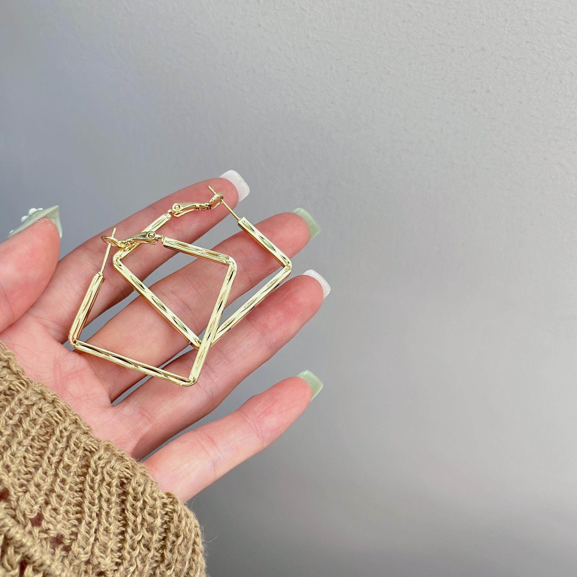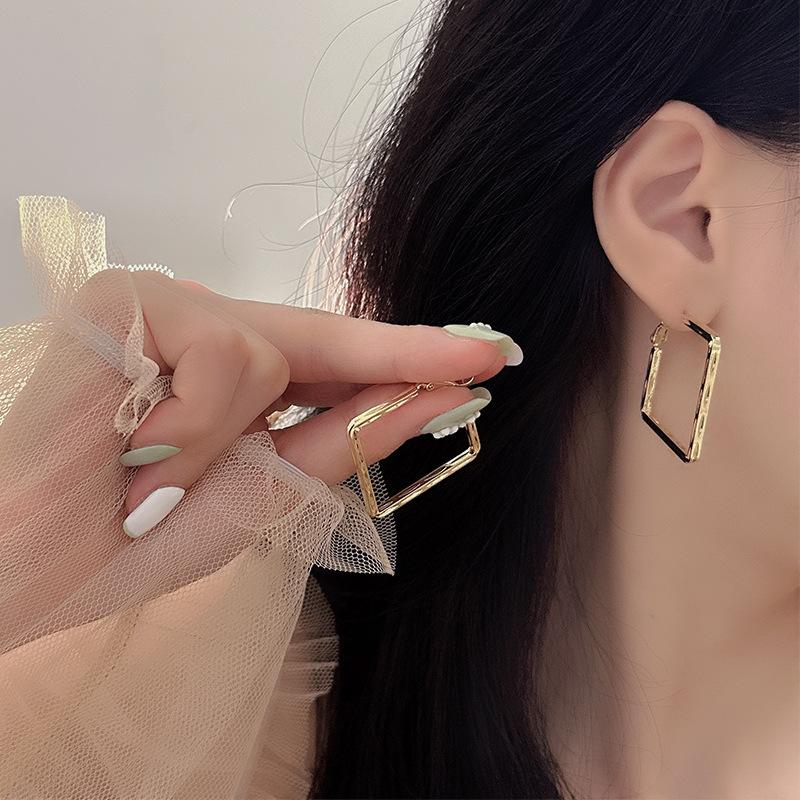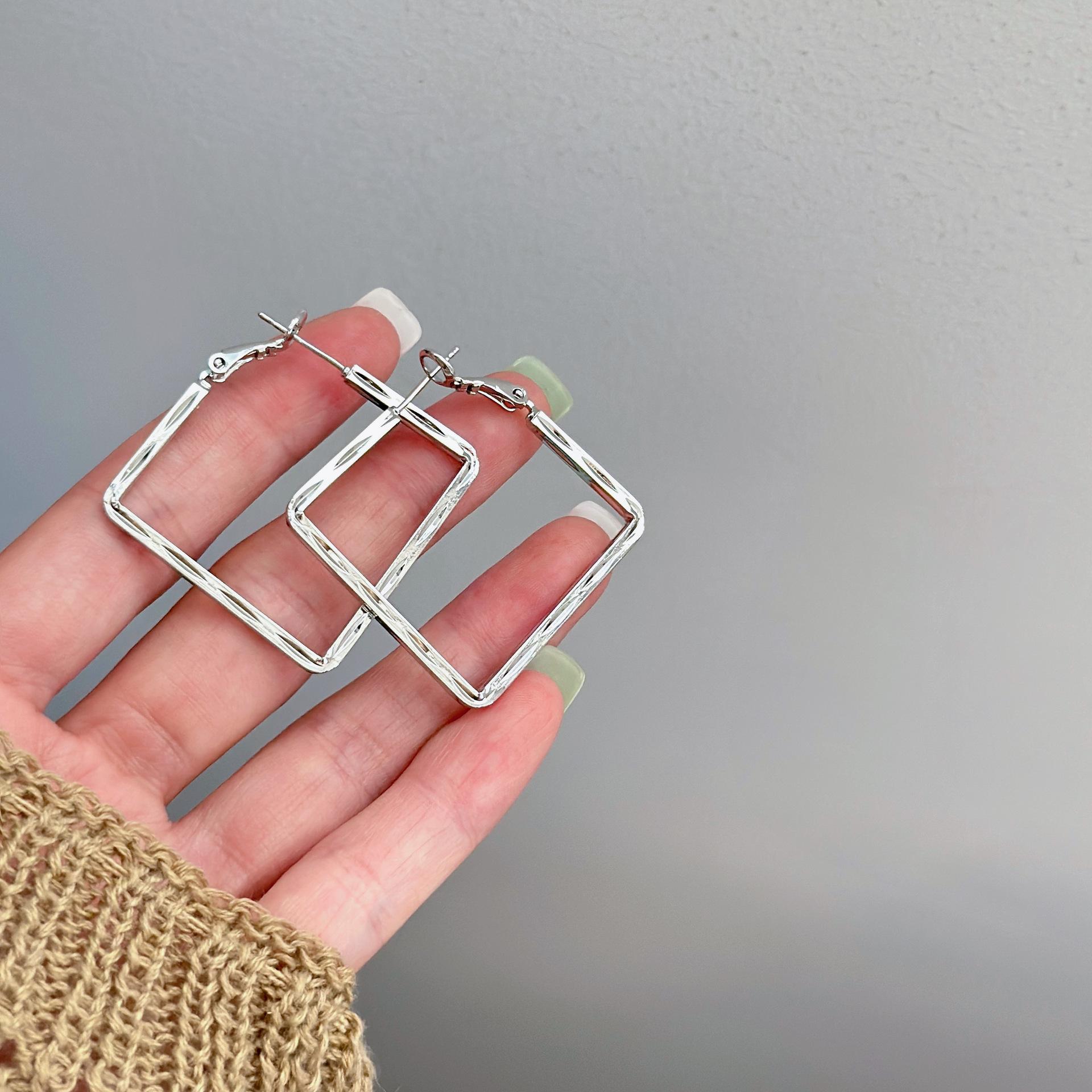 Pendientes de metal exagerados de estilo europeo y americano para mujer, estilo francés, estilo frío, geométricos, cuadrados, con hebilla de oreja, sencillos y modernos.