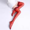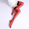 Venta al por mayor de fábrica medias rojas laterales medias de costura de color contrastante calcetines hasta la rodilla para niños calcetines altos hasta el muslo ultrafinos sexy negros