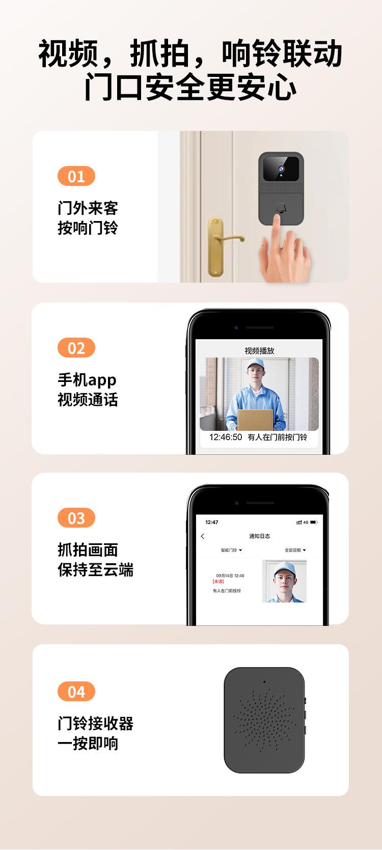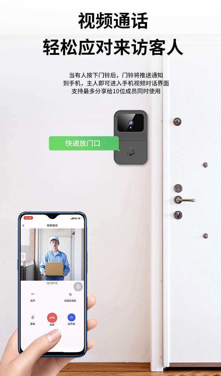 Fabricante mayorista de timbre de video inteligente X9, videoportero inalámbrico de vigilancia remota para el hogar, captura de visión nocturna HD