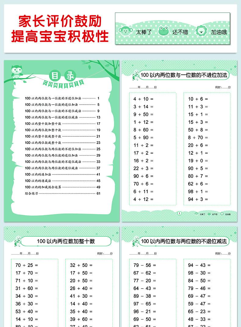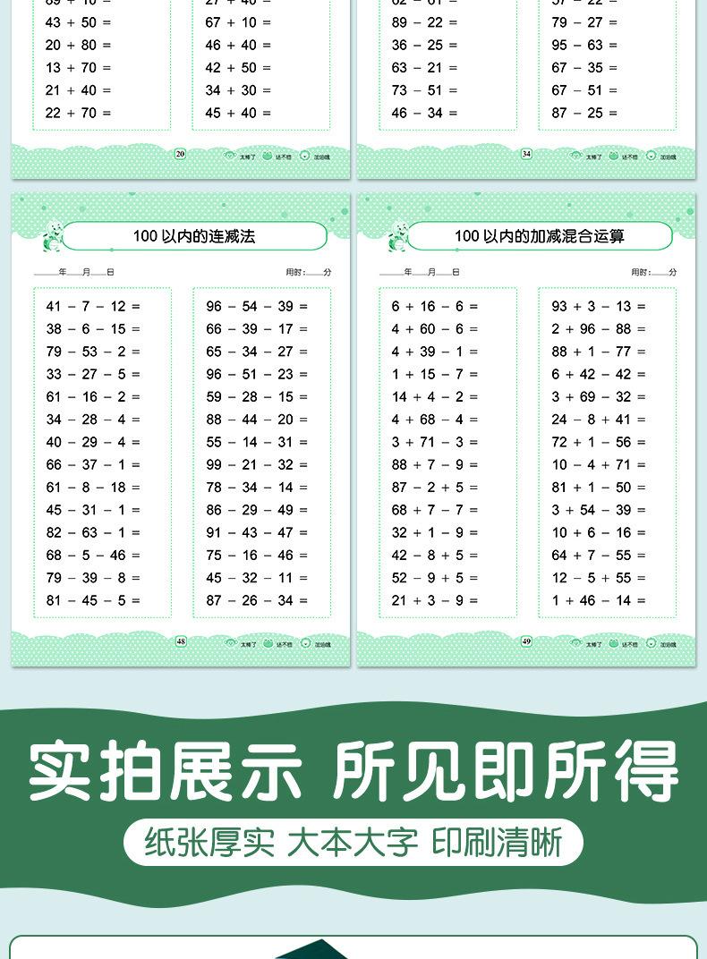 Suma y resta dentro de 100, práctica del pensamiento matemático dentro de 10/20/50, suma y resta matemática todos los días