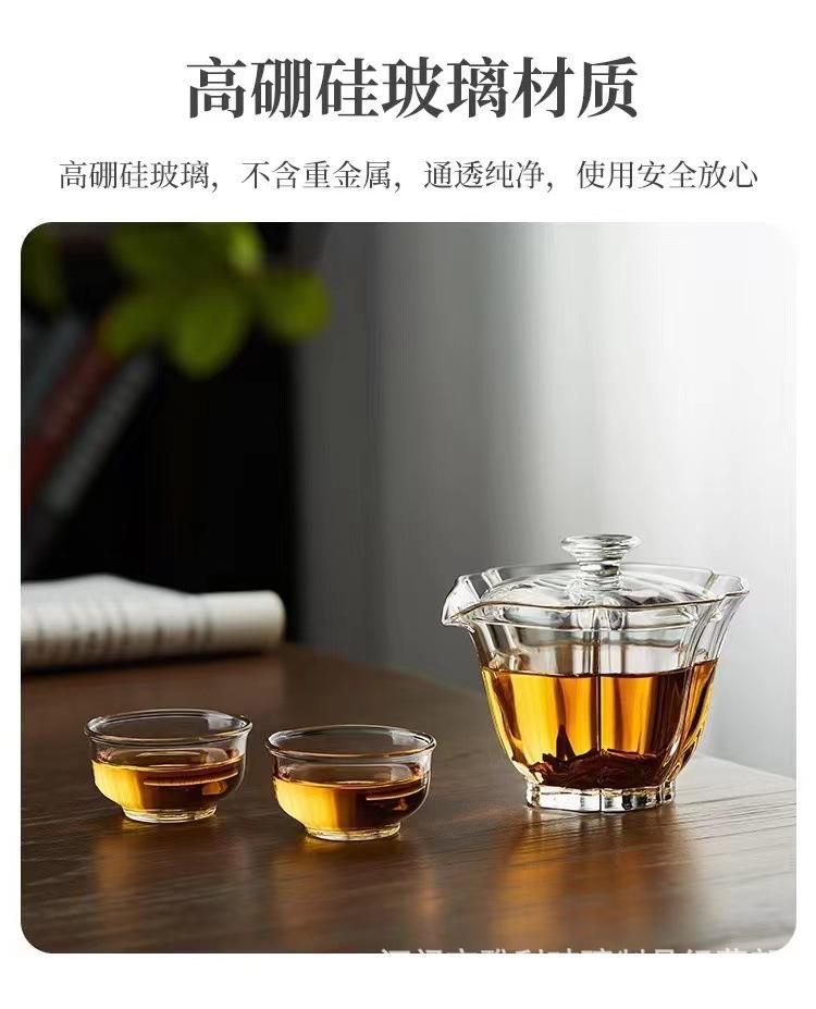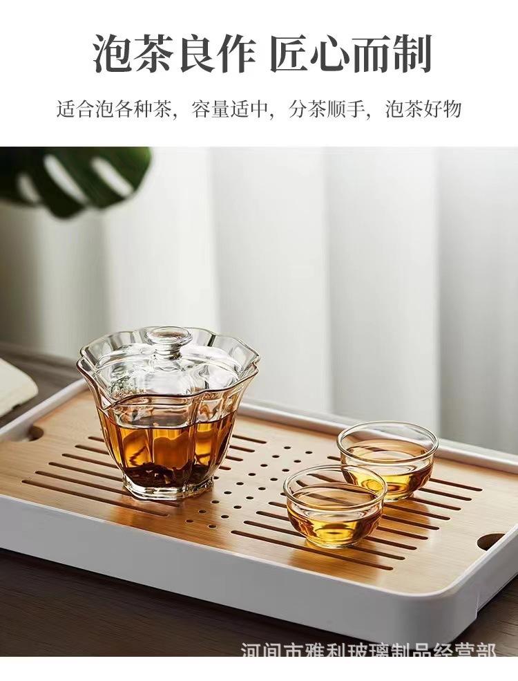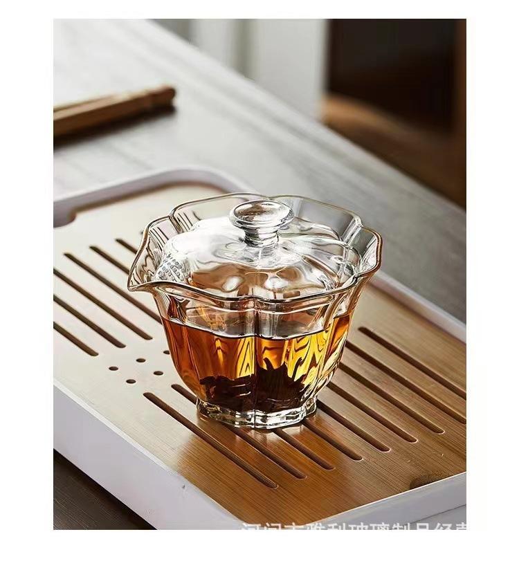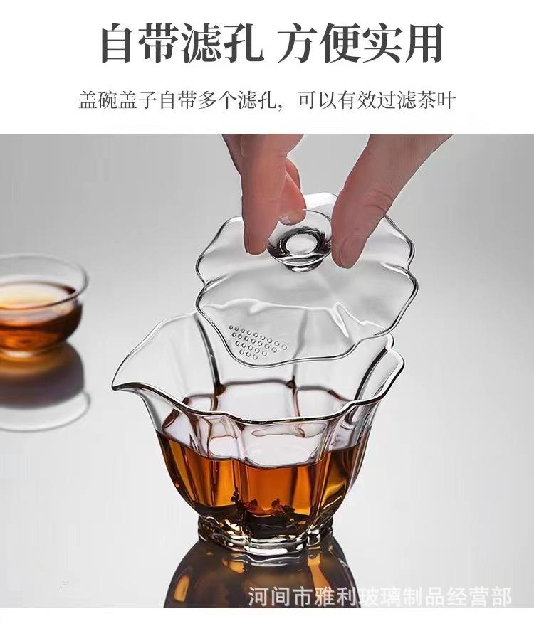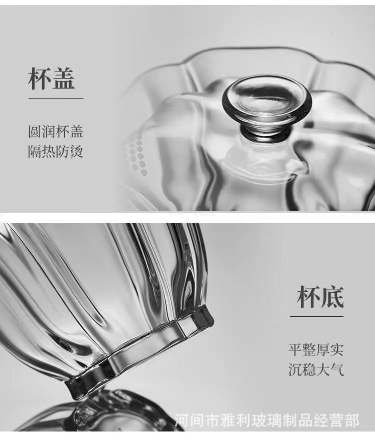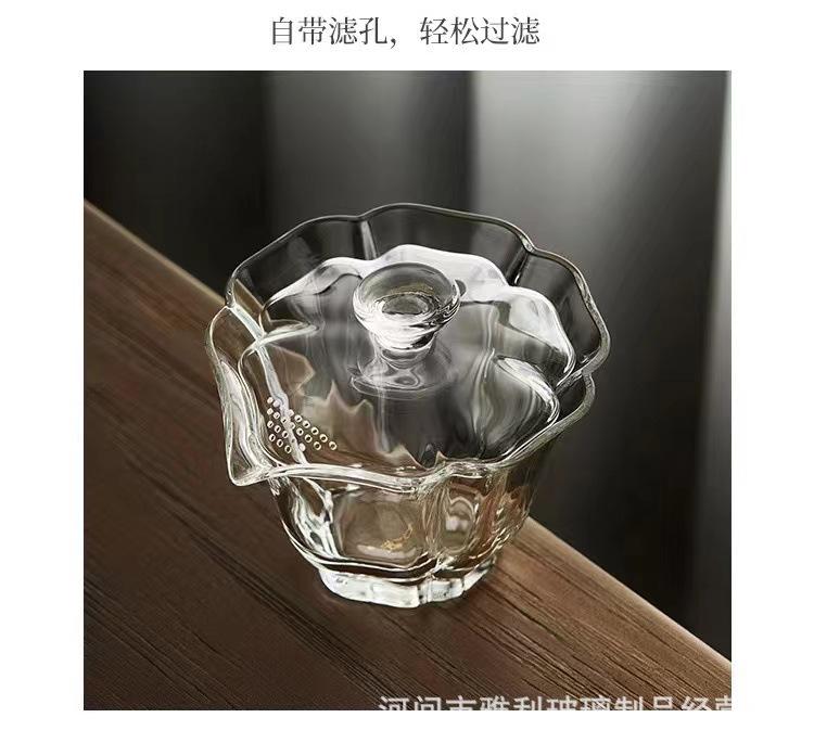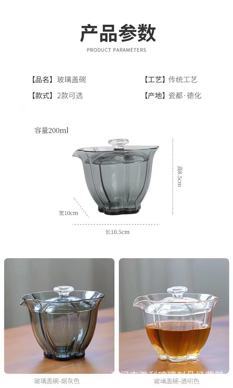 Tazón con Tapa de Vidrio Baicai Alto Borosilicato Resistente a Altas Temperaturas Tazón con Tapa Tetera Agujero para Filtro de Mano Juego de Té Kung Fu Tazón con Tapa Sancai