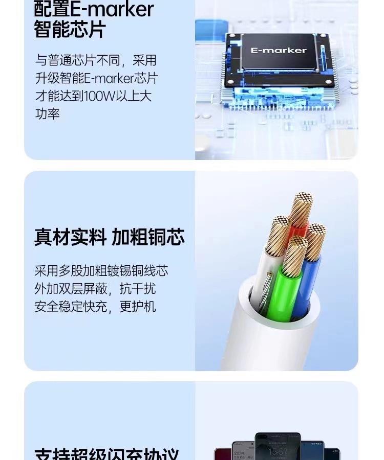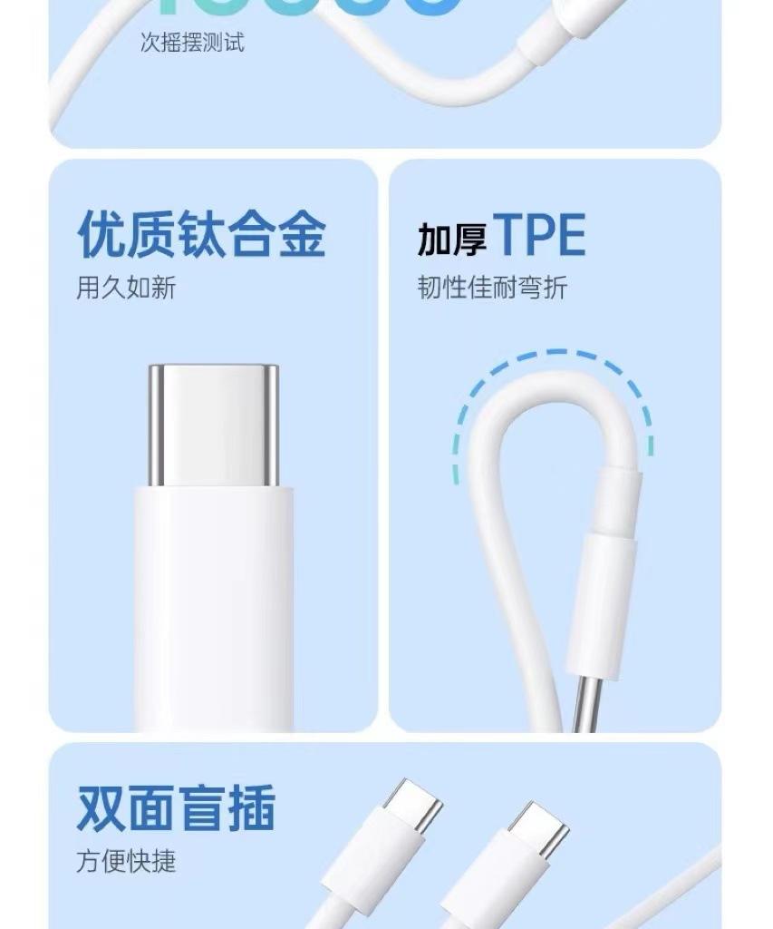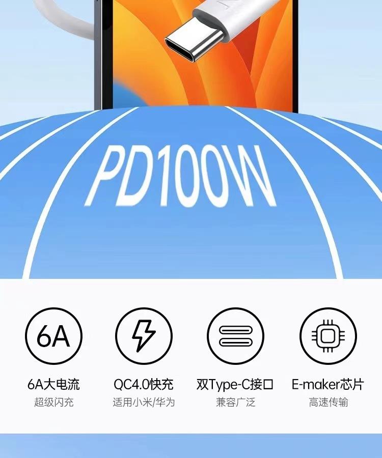 Compra Cable de datos USB tipo C de doble cabezal directo de fábrica con carga rápida PD Emark para coche para laptop Apple al por mayor en Joom.pro