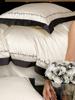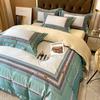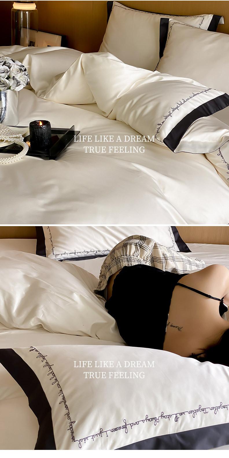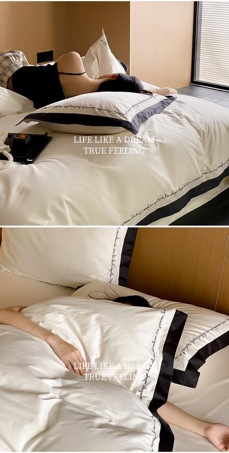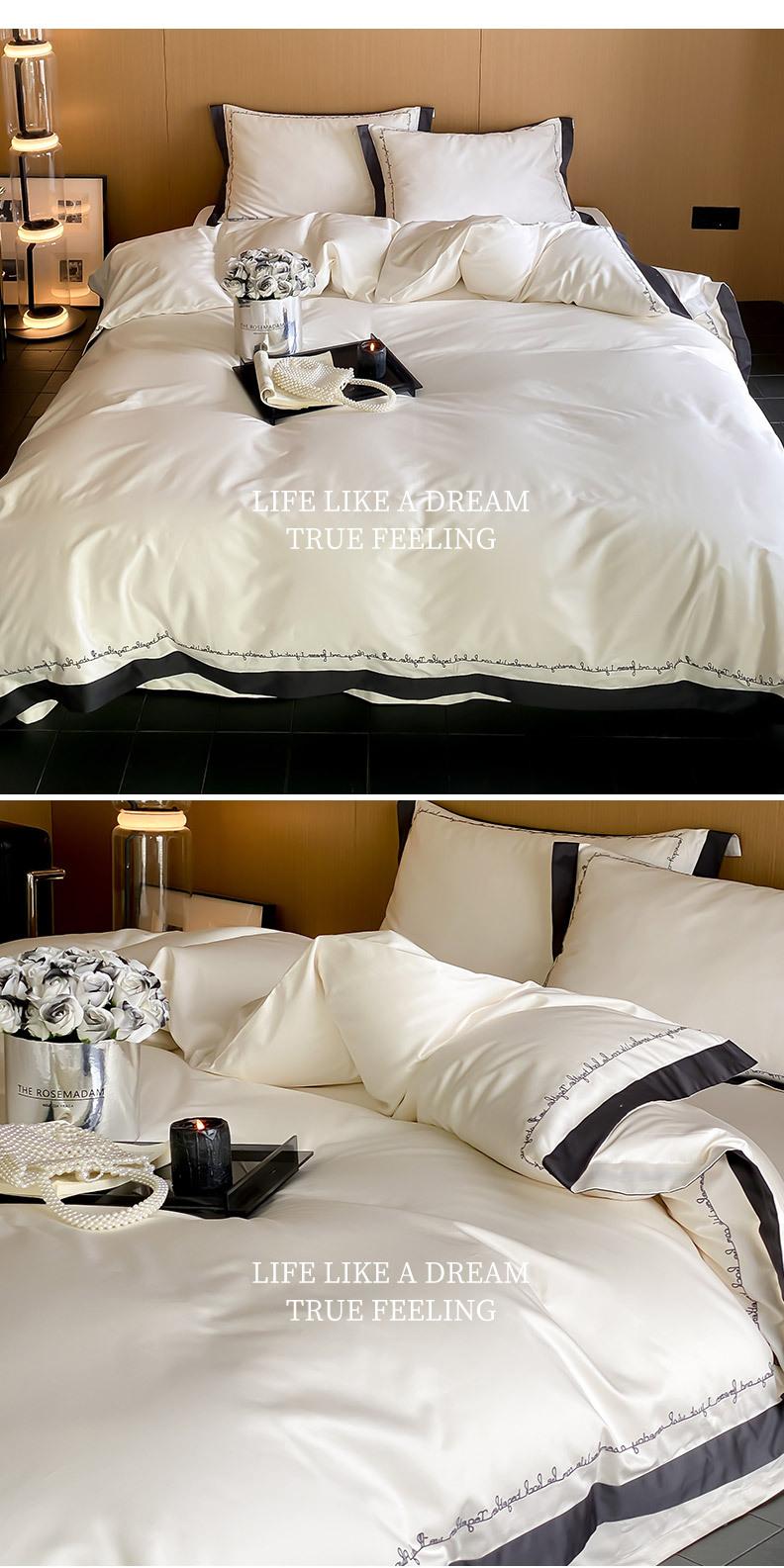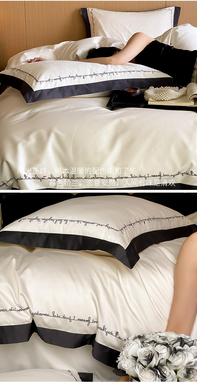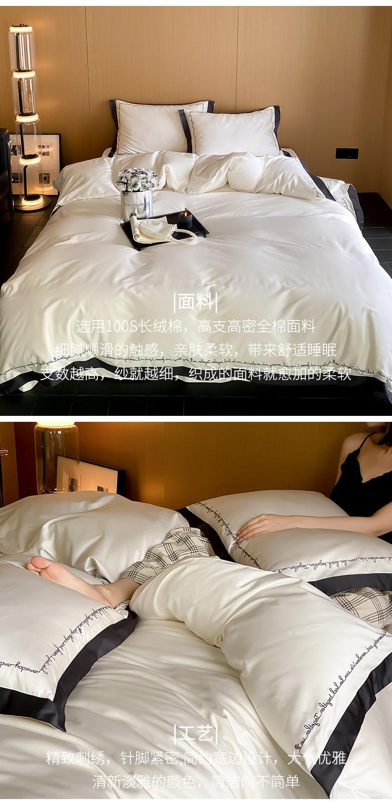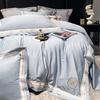 Juego de cama de cuatro piezas de algodón de fibra larga de 100 hilos, estilo minimalista y lujoso, con bordado de letras sencillas, funda de edredón y sábana.