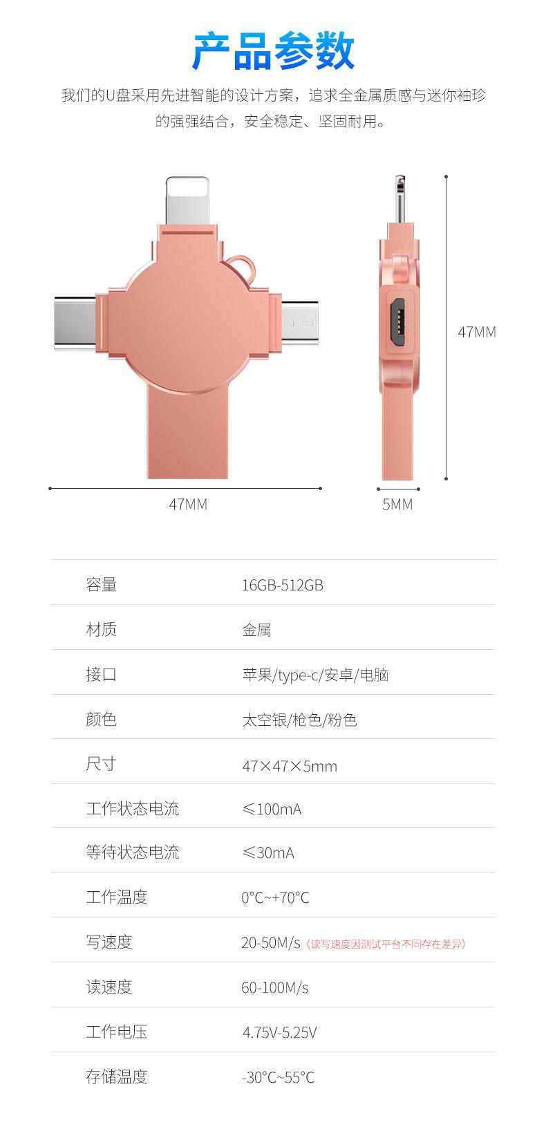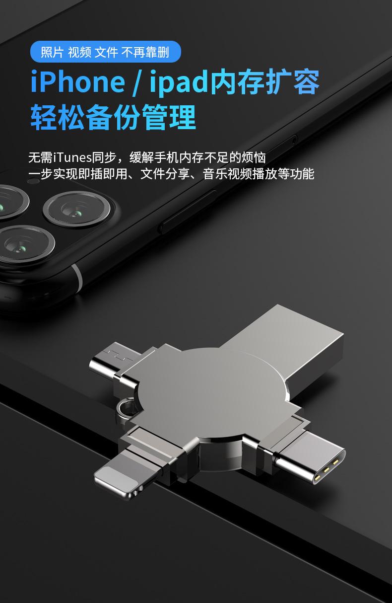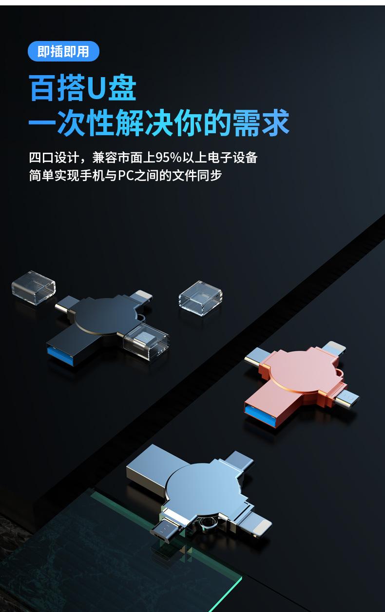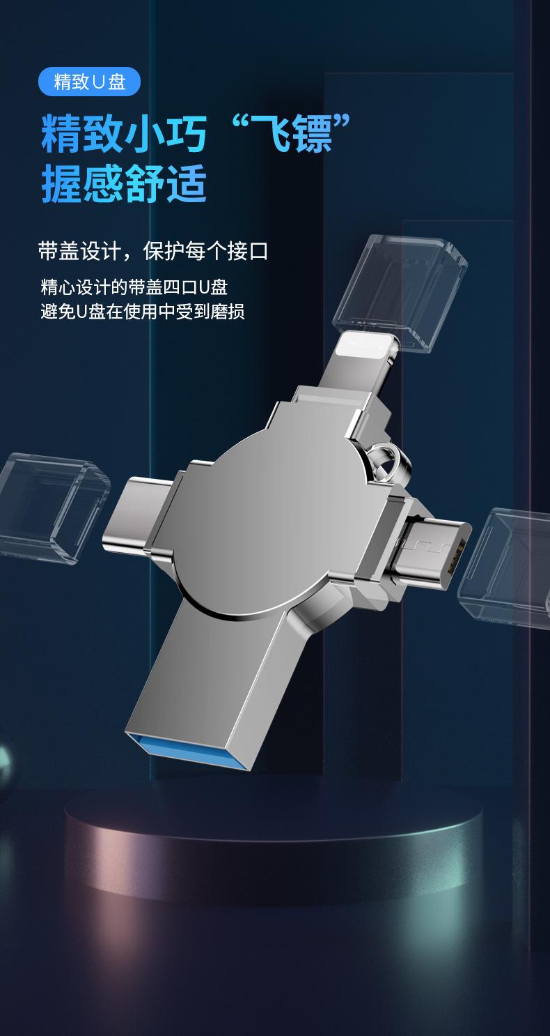 Adecuado para Teléfono Móvil Apple Android USB Metal USB Unidad Flash al por Mayor Unidad Flash USB Cuatro en Uno 32G64Gg 128g Mini USB