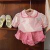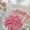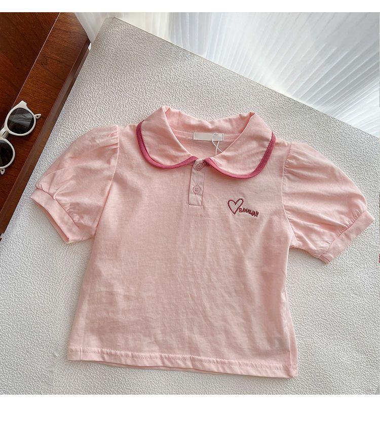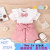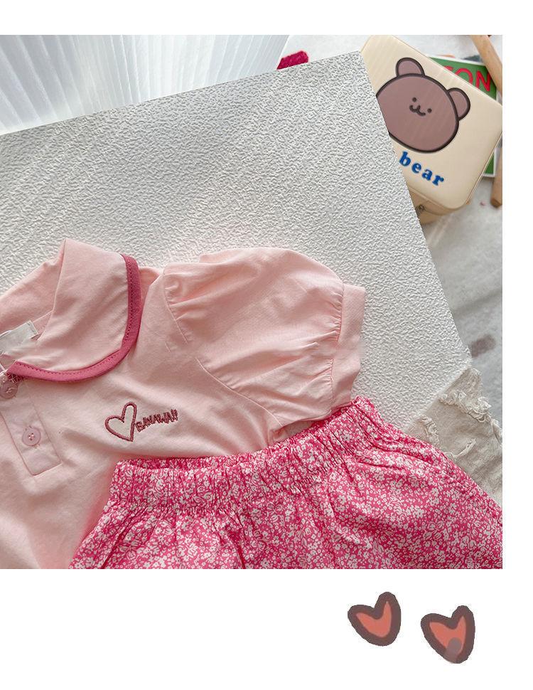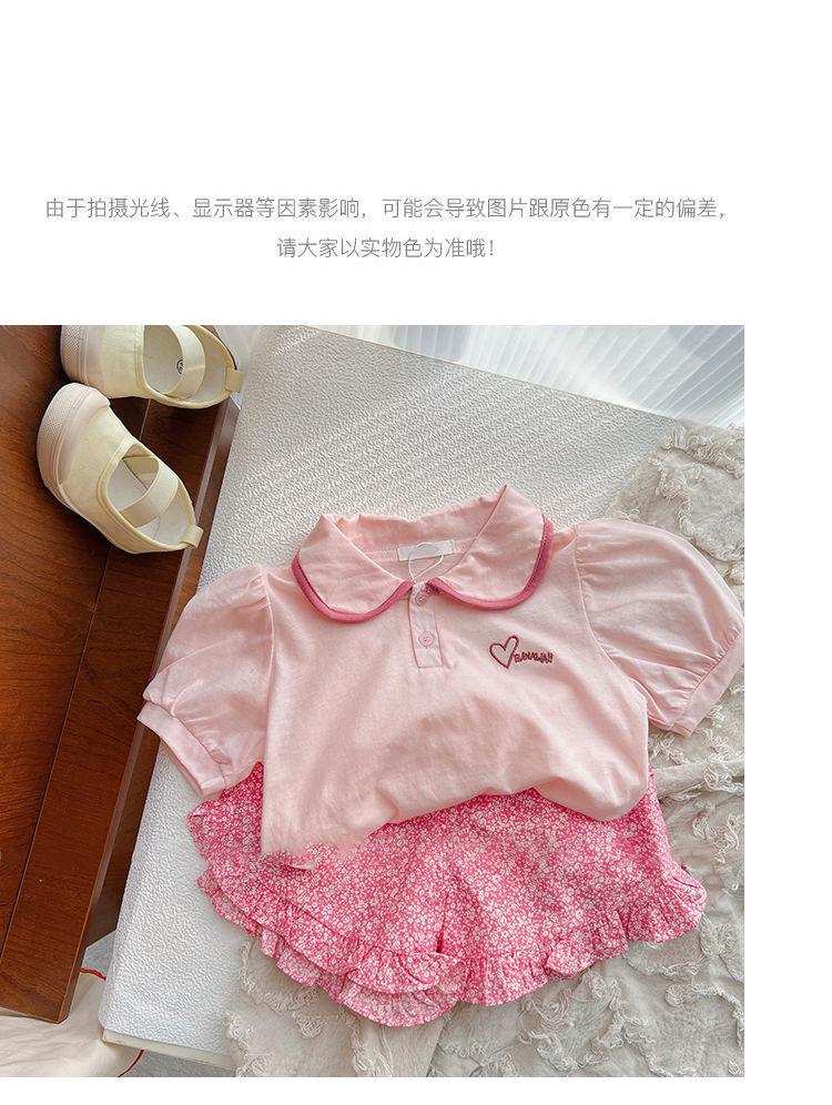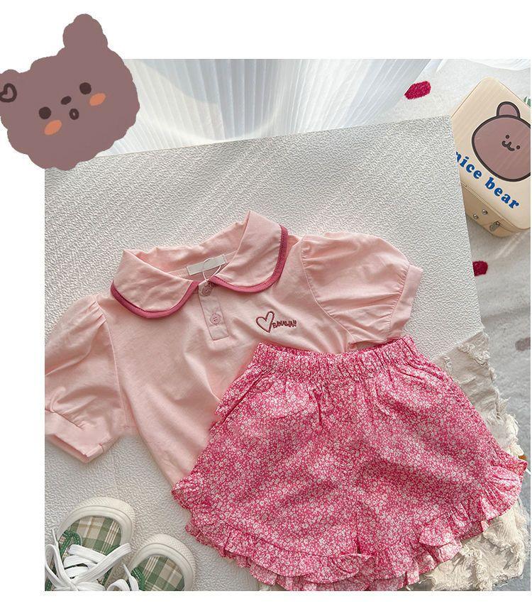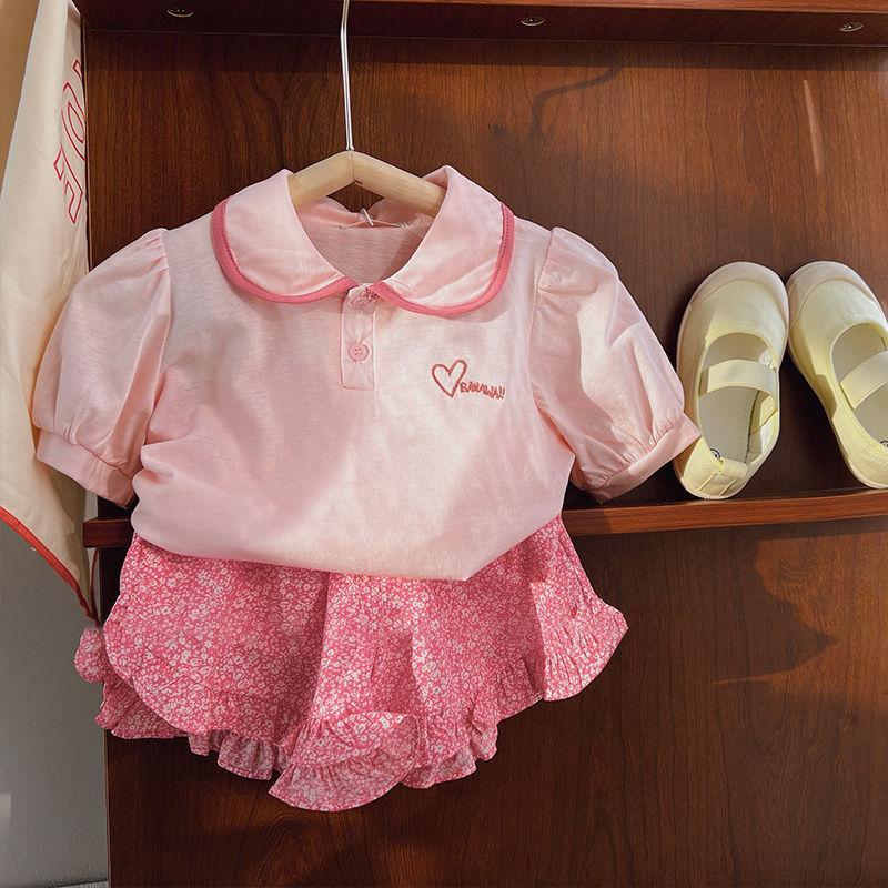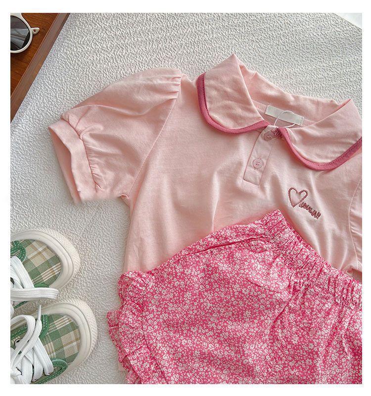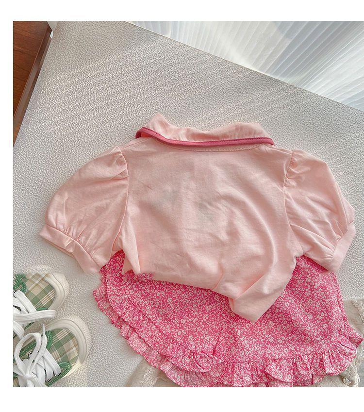 Traje de verano para niñas, elegante, personalizado, de marca de moda coreana, con cuello de muñeca, camiseta tipo polo, falda corta floral
