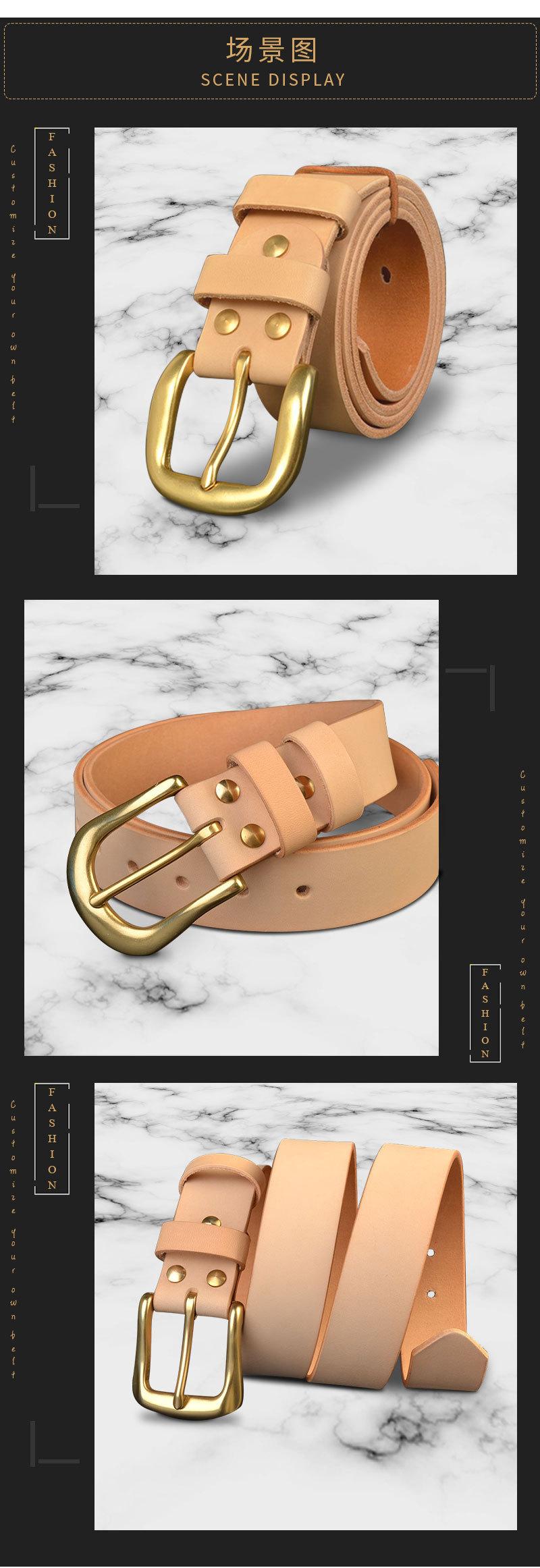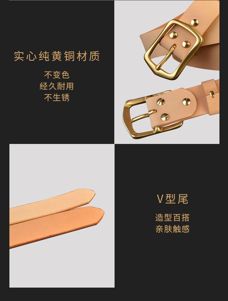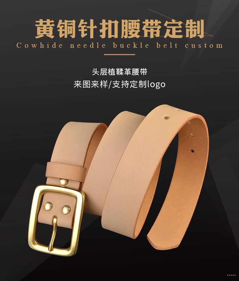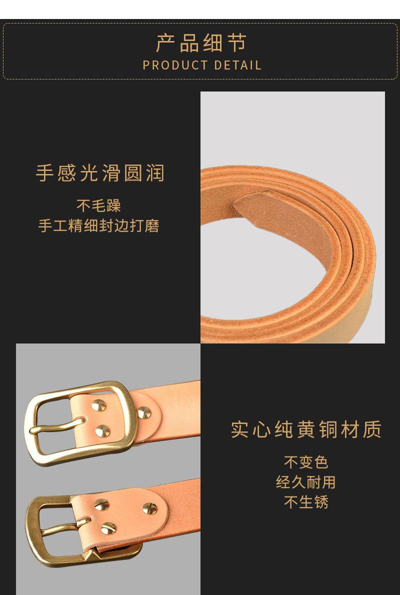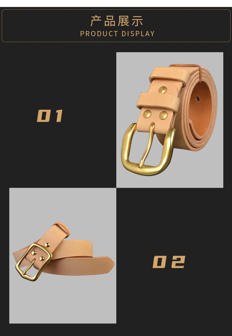 Cinturón de piel de vacuno de primera capa curtida vegetal de color original para hombre, hebilla de latón macizo, estilo informal americano para vaqueros.