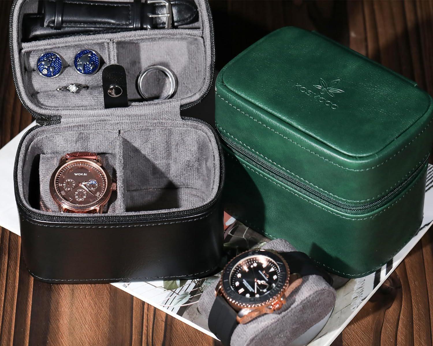 Estuche de Viaje para Relojes y Organizador de Viaje para Joyería para Hombres - Almacenamiento para Estuches de Correa de Reloj - Cuero Premium