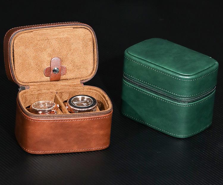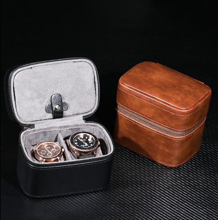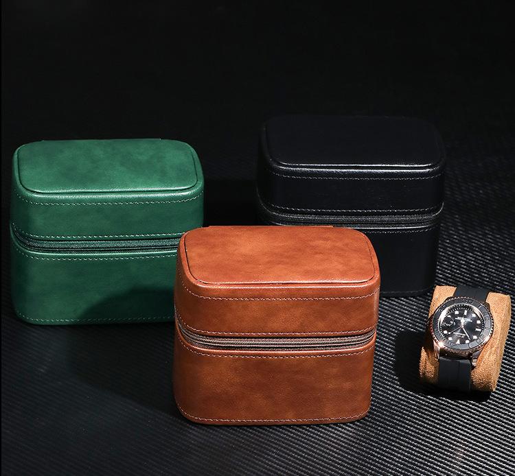 Estuche de Reloj Transfronterizo Amazon con Patrón de Lichi con Cremallera, Bolsa de Almacenamiento de Relojes de Cuero para Negocios, Estuche de Reloj de Mano Antidesgaste