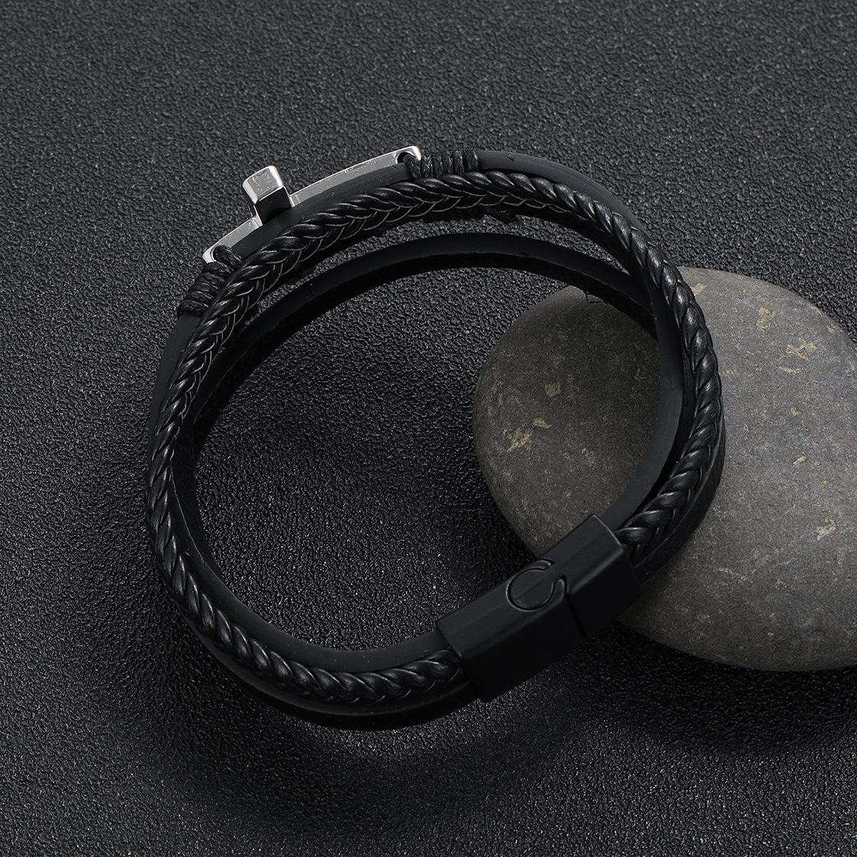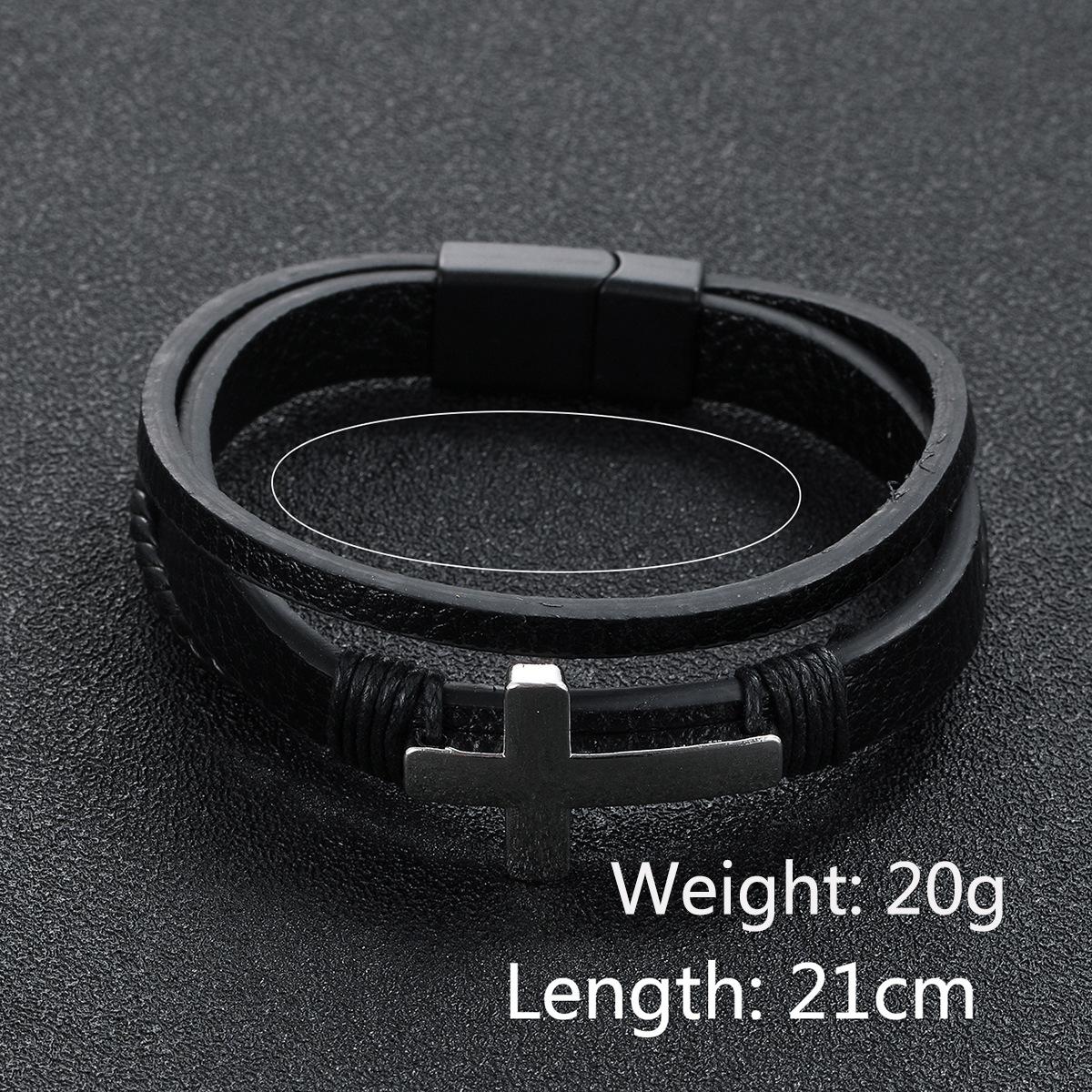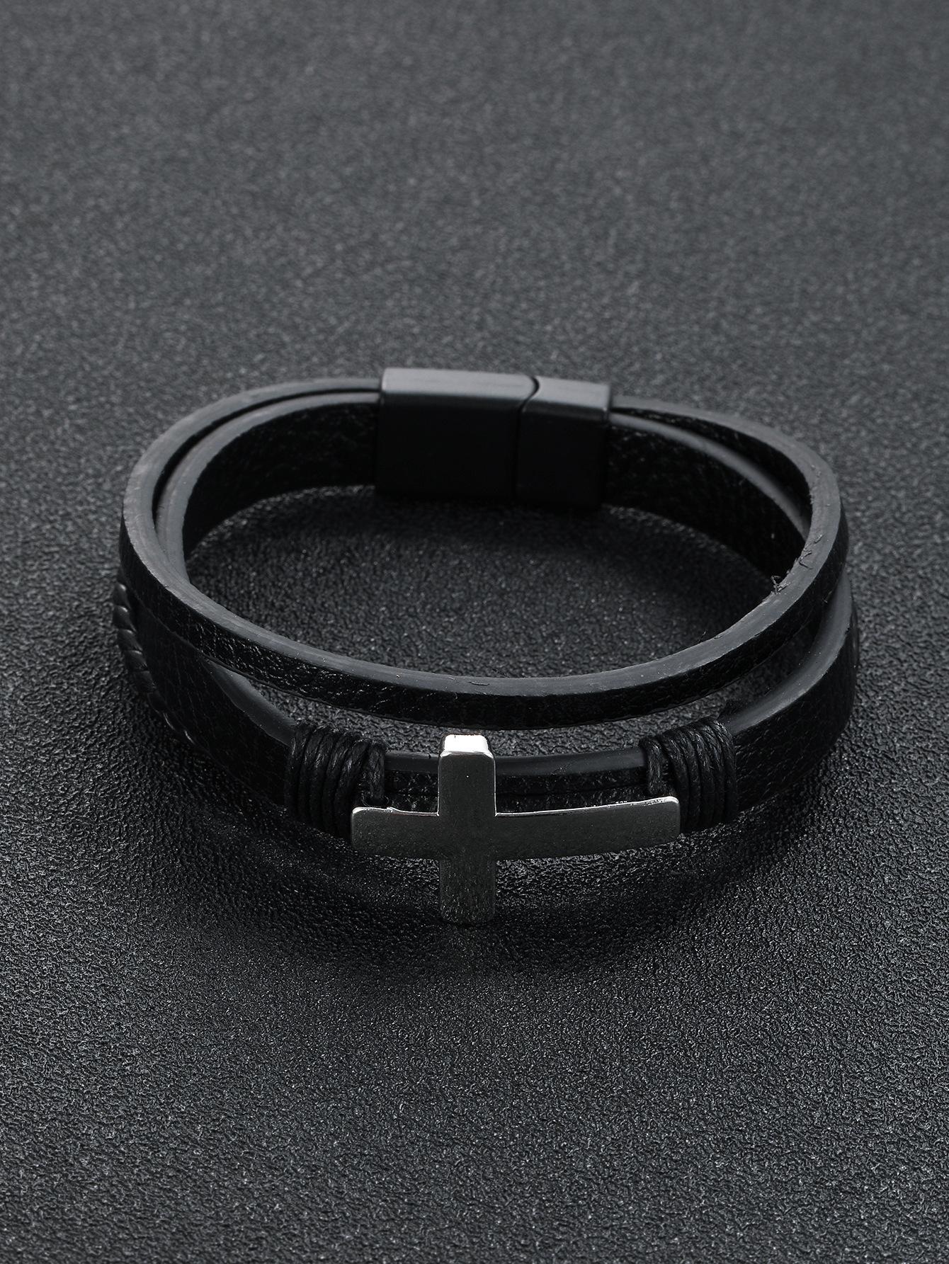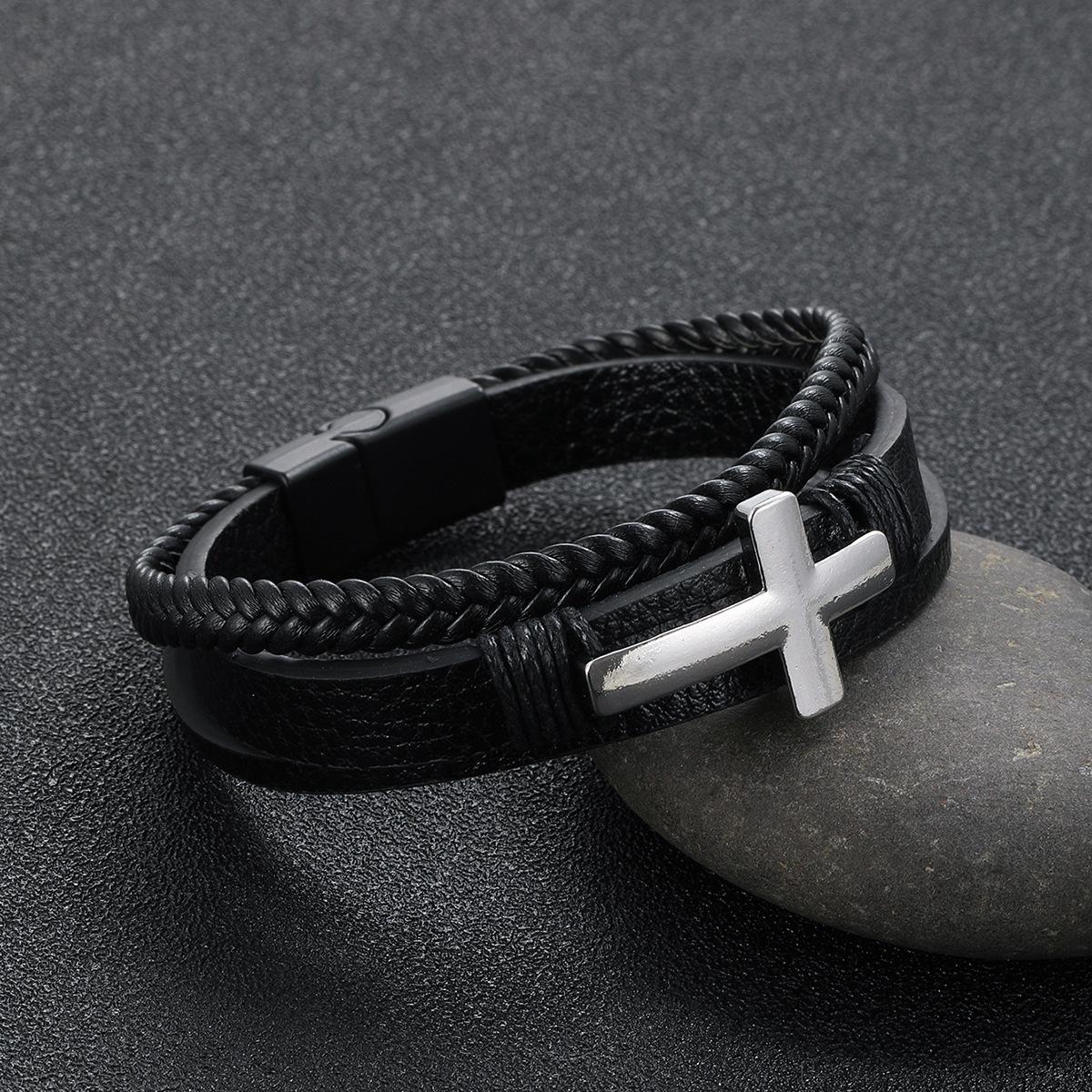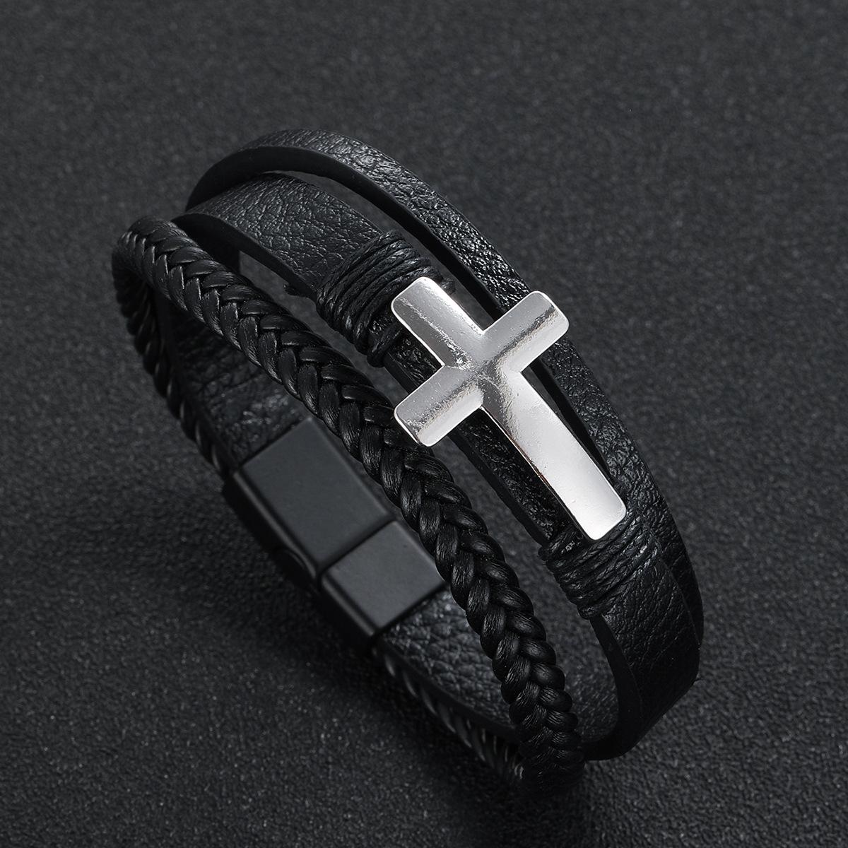 Pulsera cruzada de cuero tejido multicapa con hebilla magnética para hombre, nueva joyería transfronteriza, personalidad retro, moda