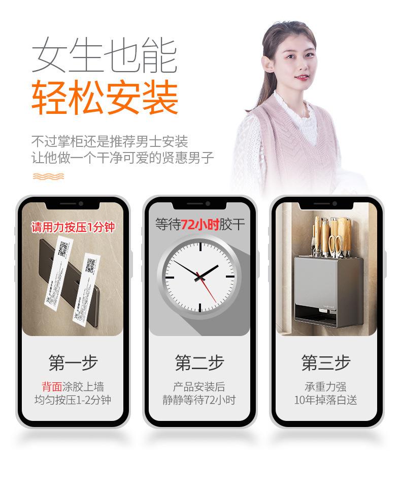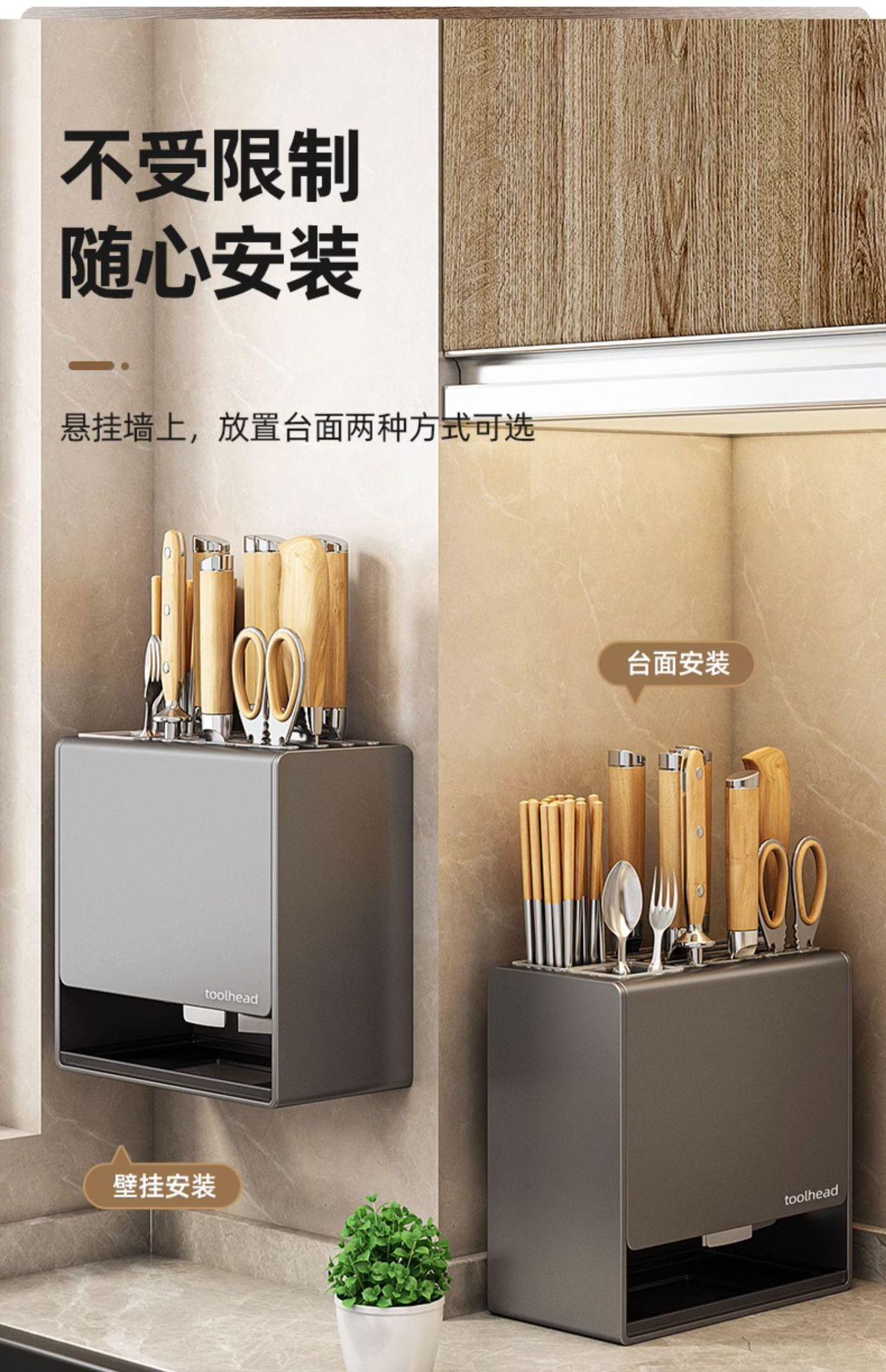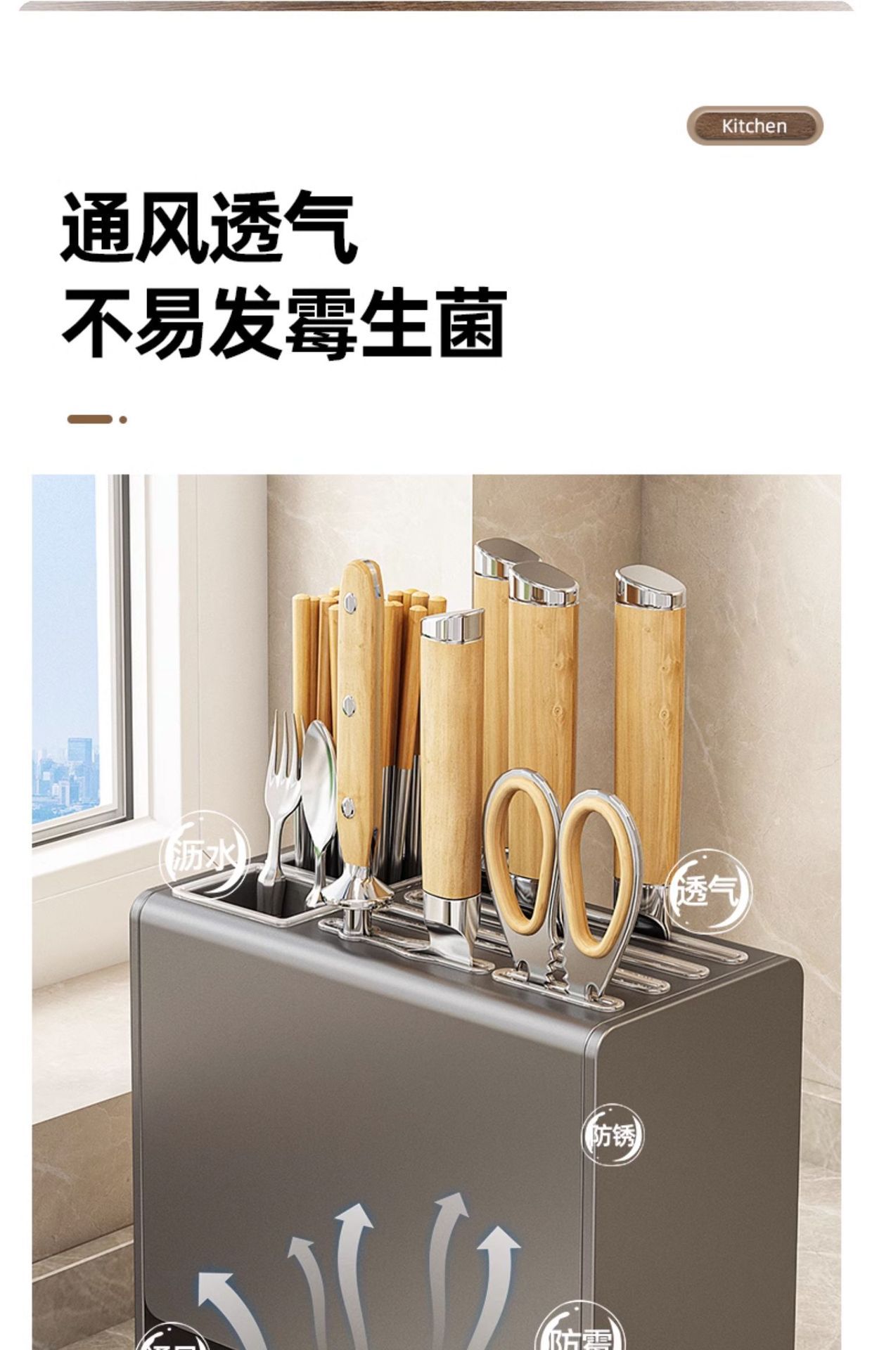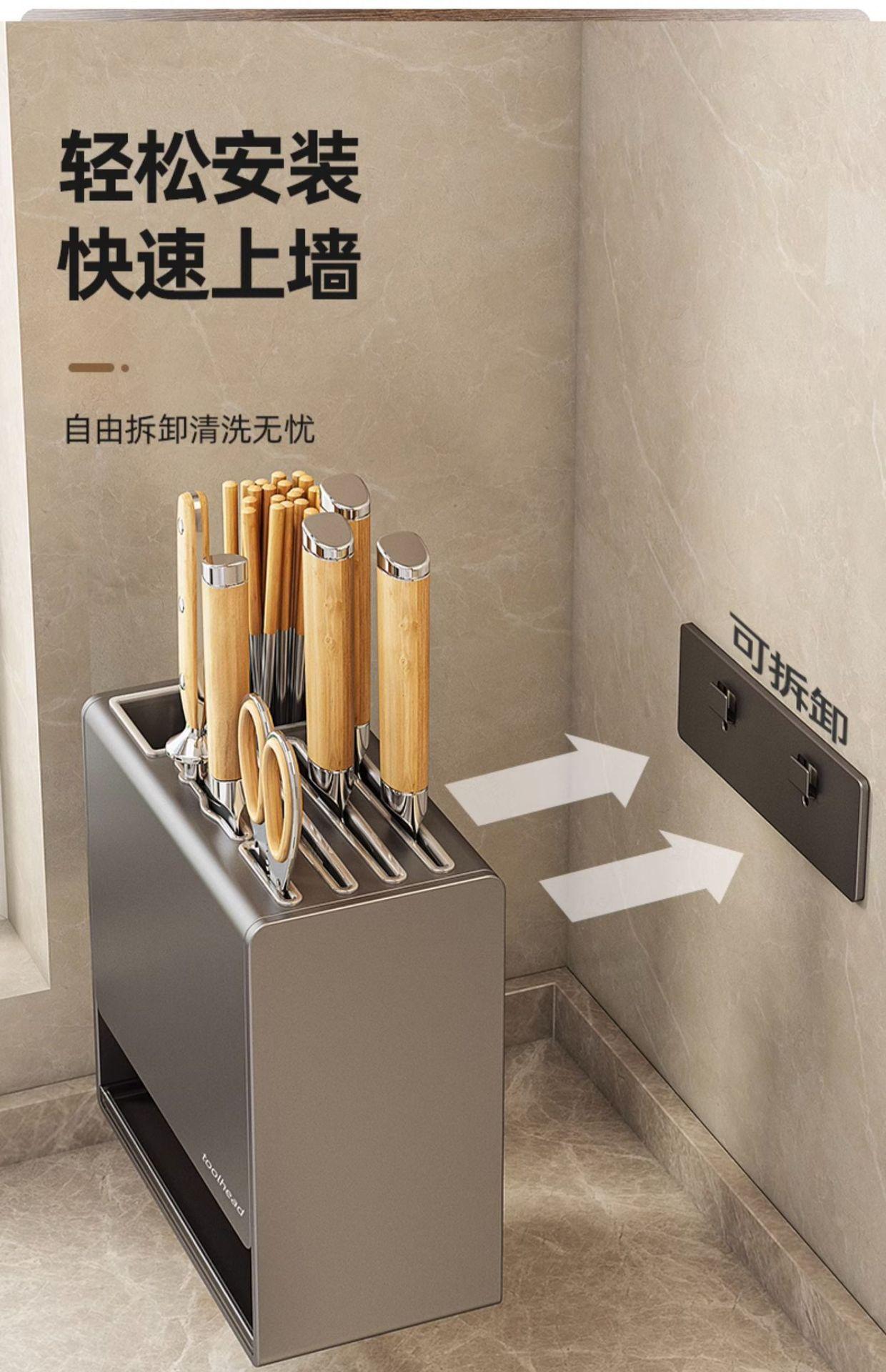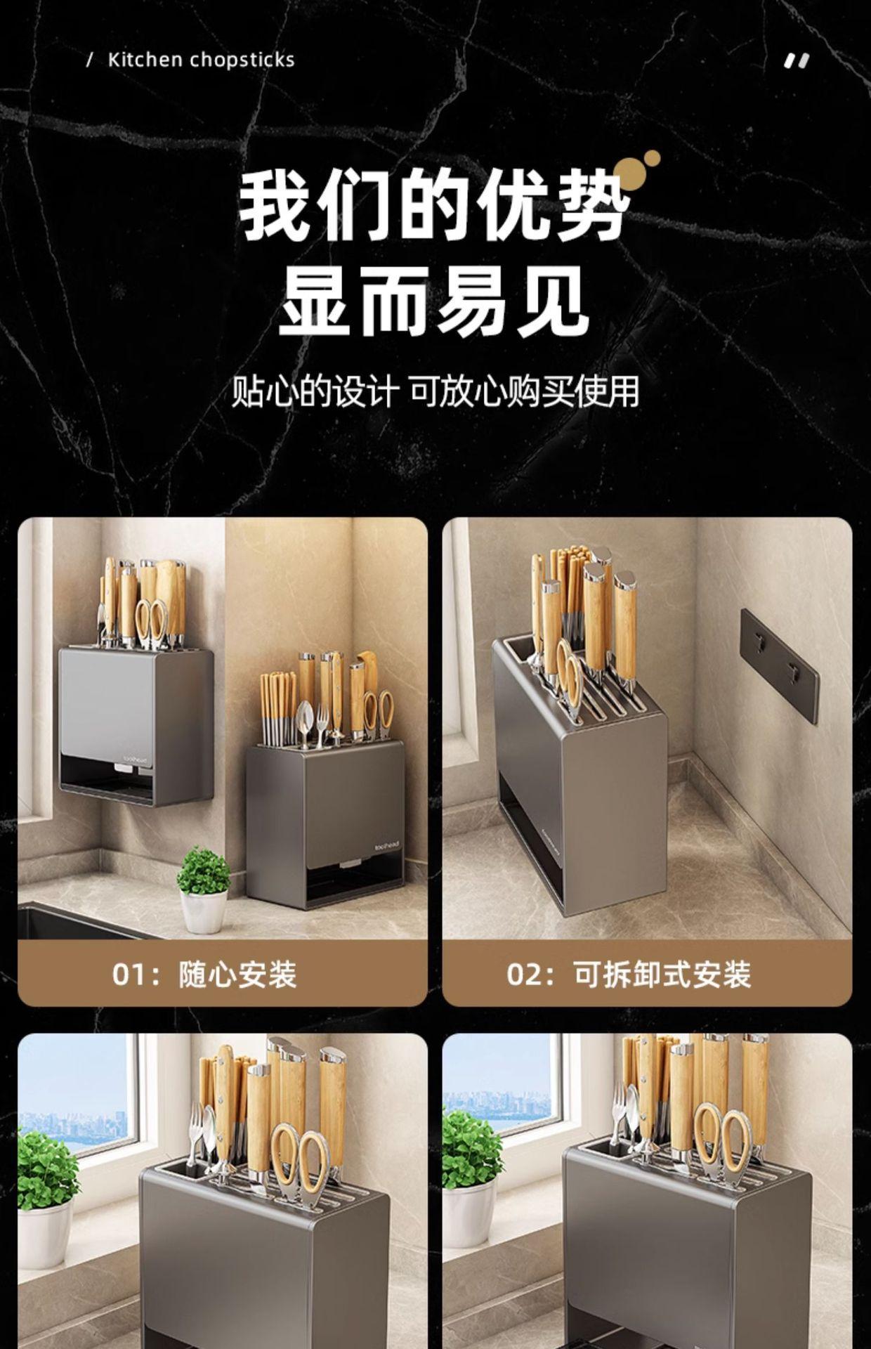 Estante de almacenamiento para cuchillos de cocina, estante de almacenamiento para encimeras domésticas, cesta para palillos, estante para cuchillos montado en la pared, almacenamiento multifuncional integrado.
