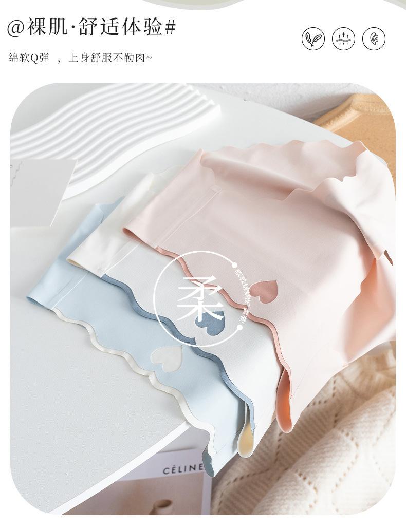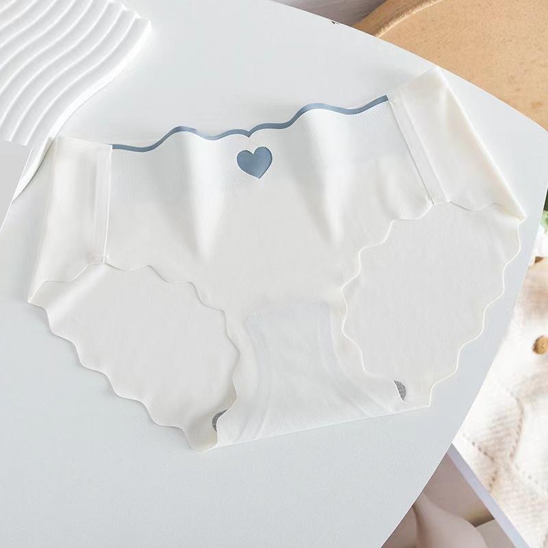 Braguitas sin costuras de seda de hielo en forma de corazón, verano delgadas con patrón ondulado transpirables entrepierna de algodón puro, estilo femenino