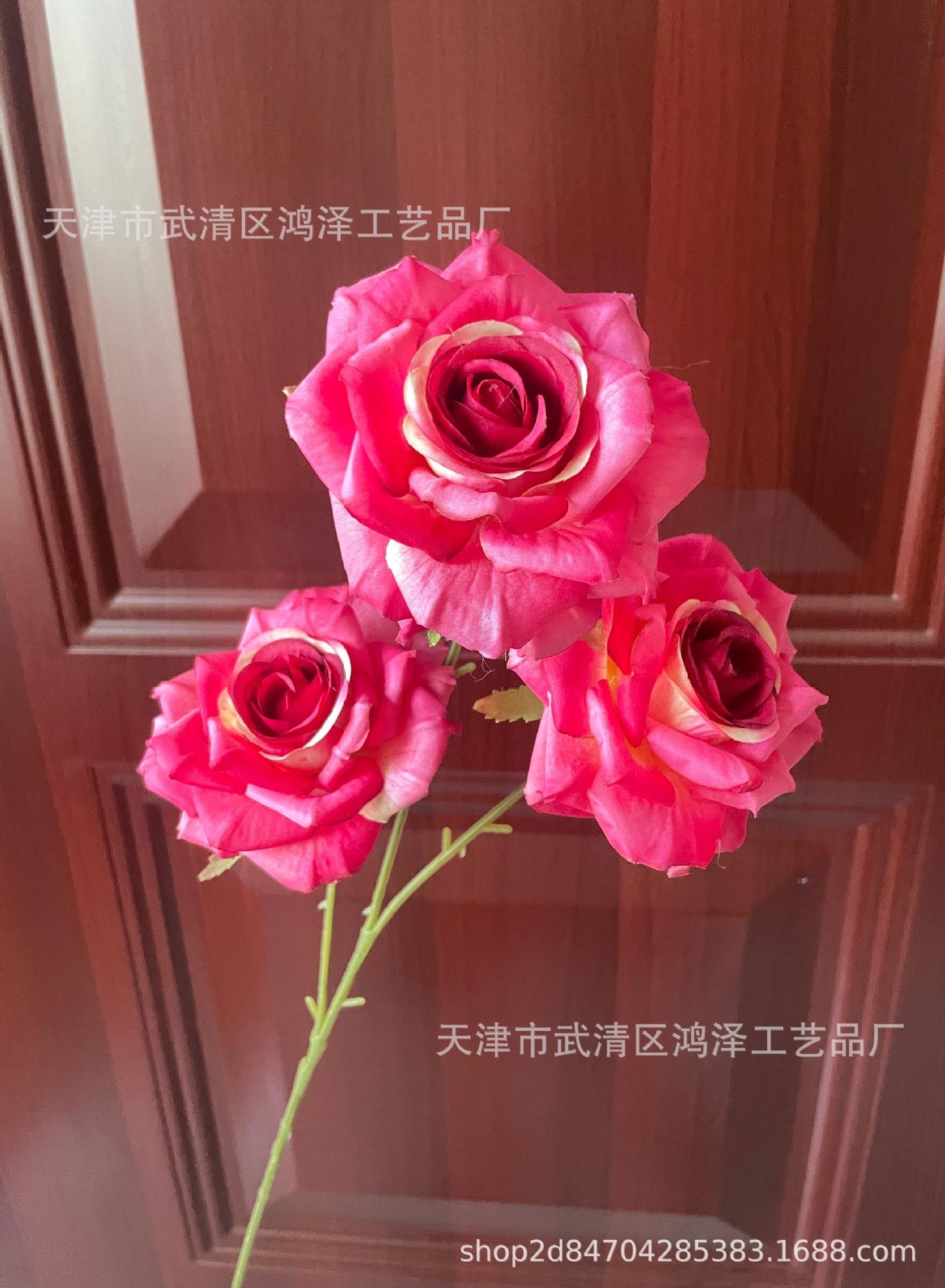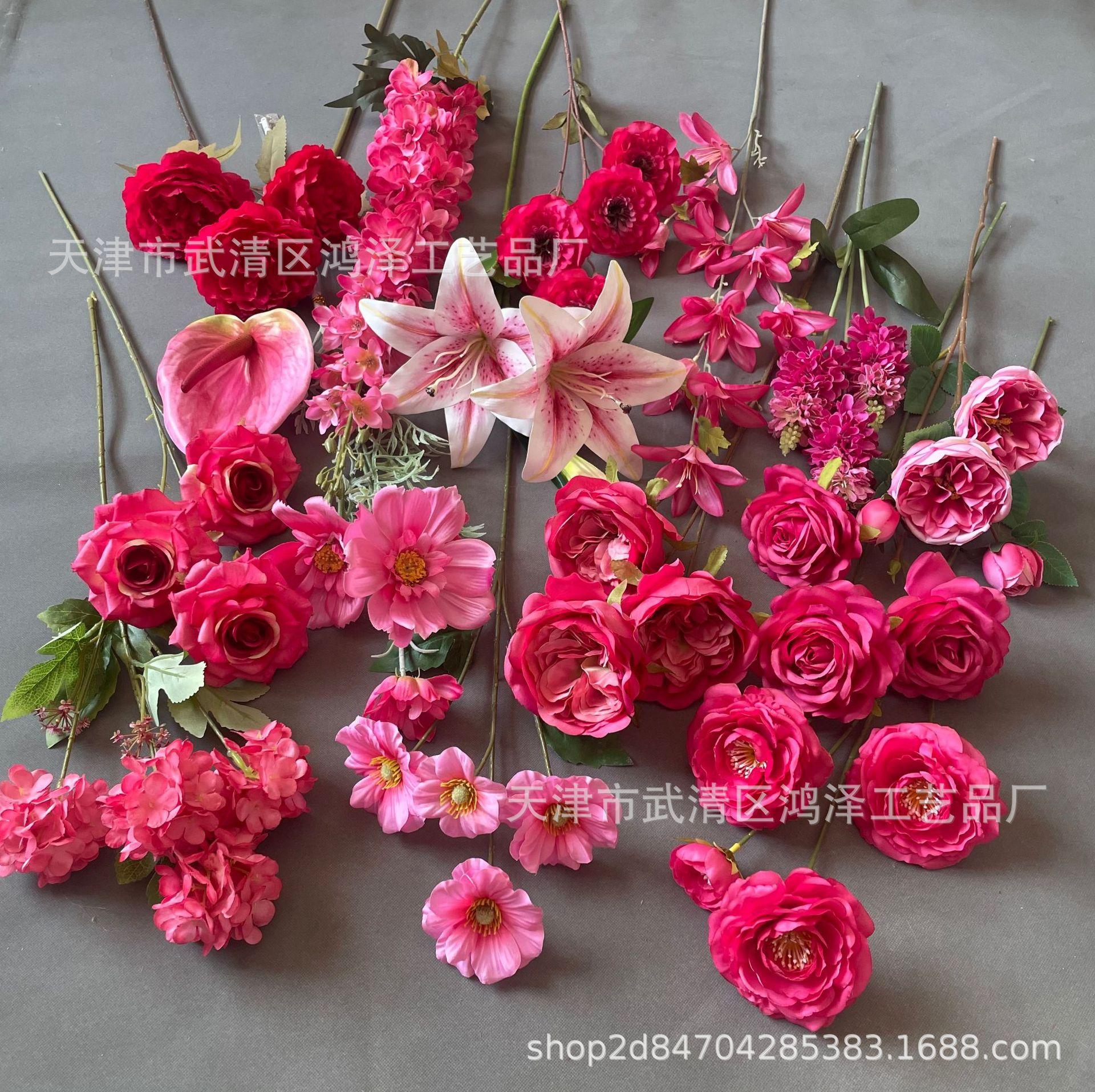 Rosa roja artificial, flor de rosa para boda, hecha a mano, para compromiso, banquete, salón de bodas, fondo, material floral decorativo.