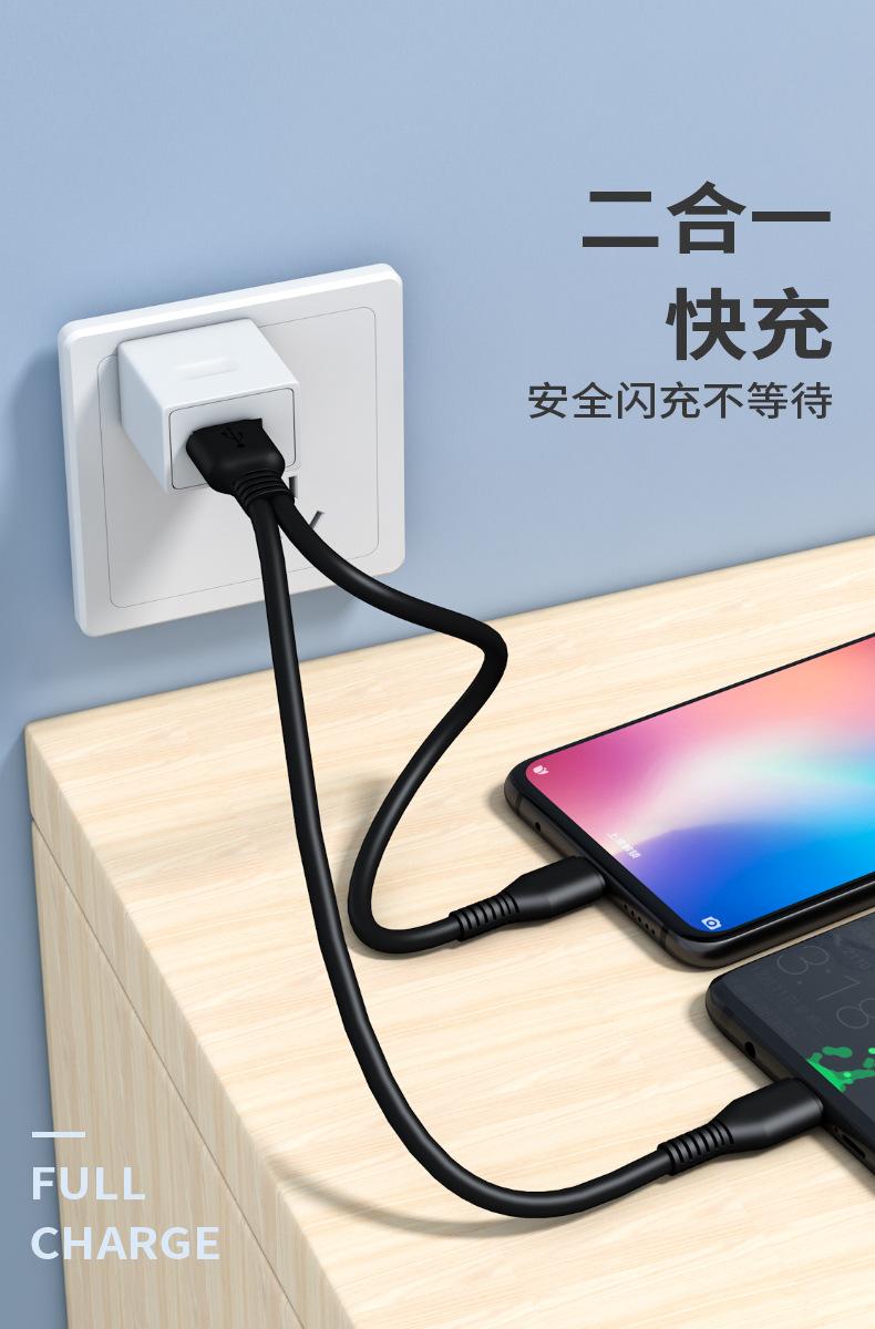 El cable de datos dos en uno es adecuado para el cable de carga multifunción de doble cabezal uno a dos tipo C de Apple Android