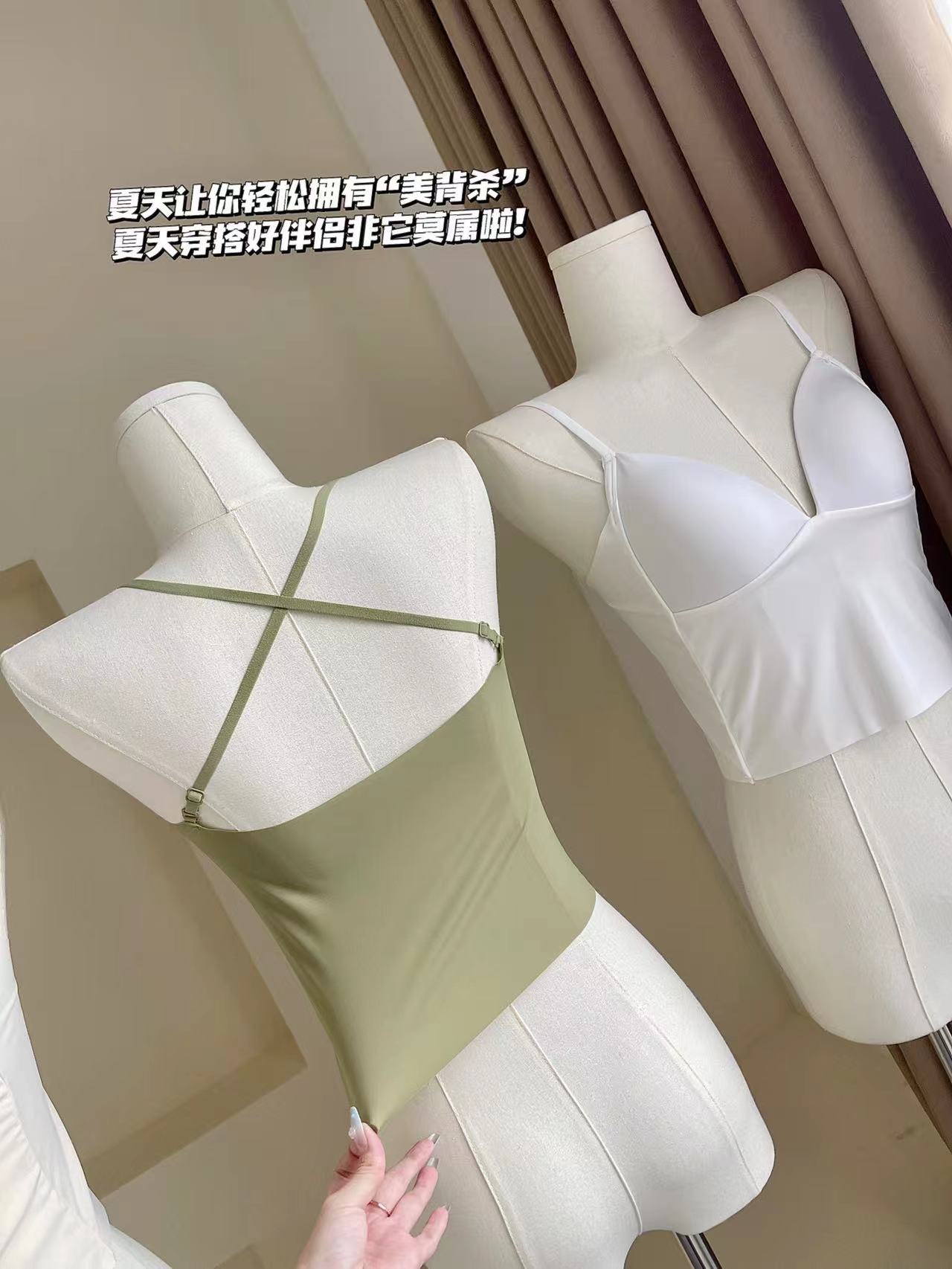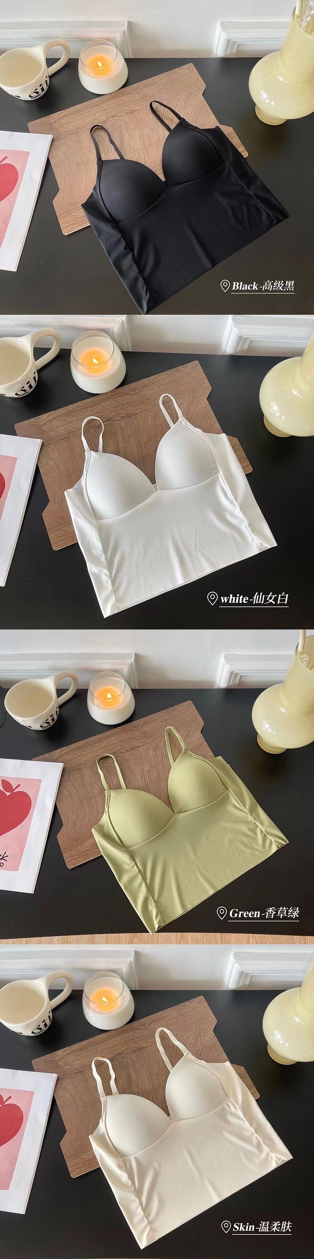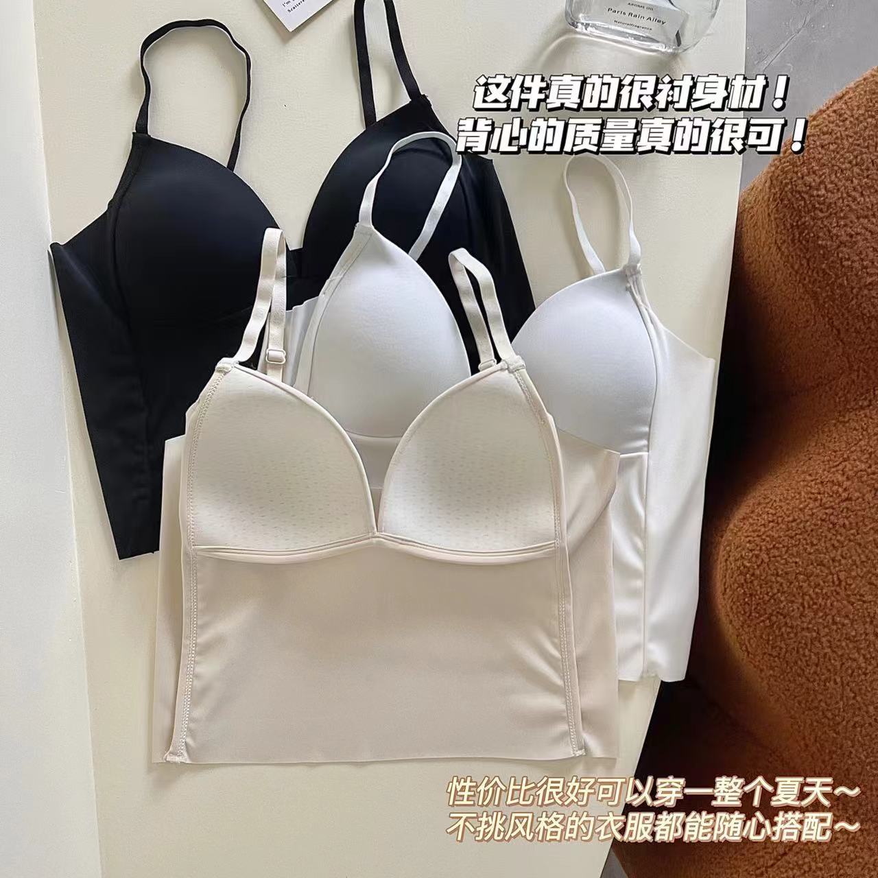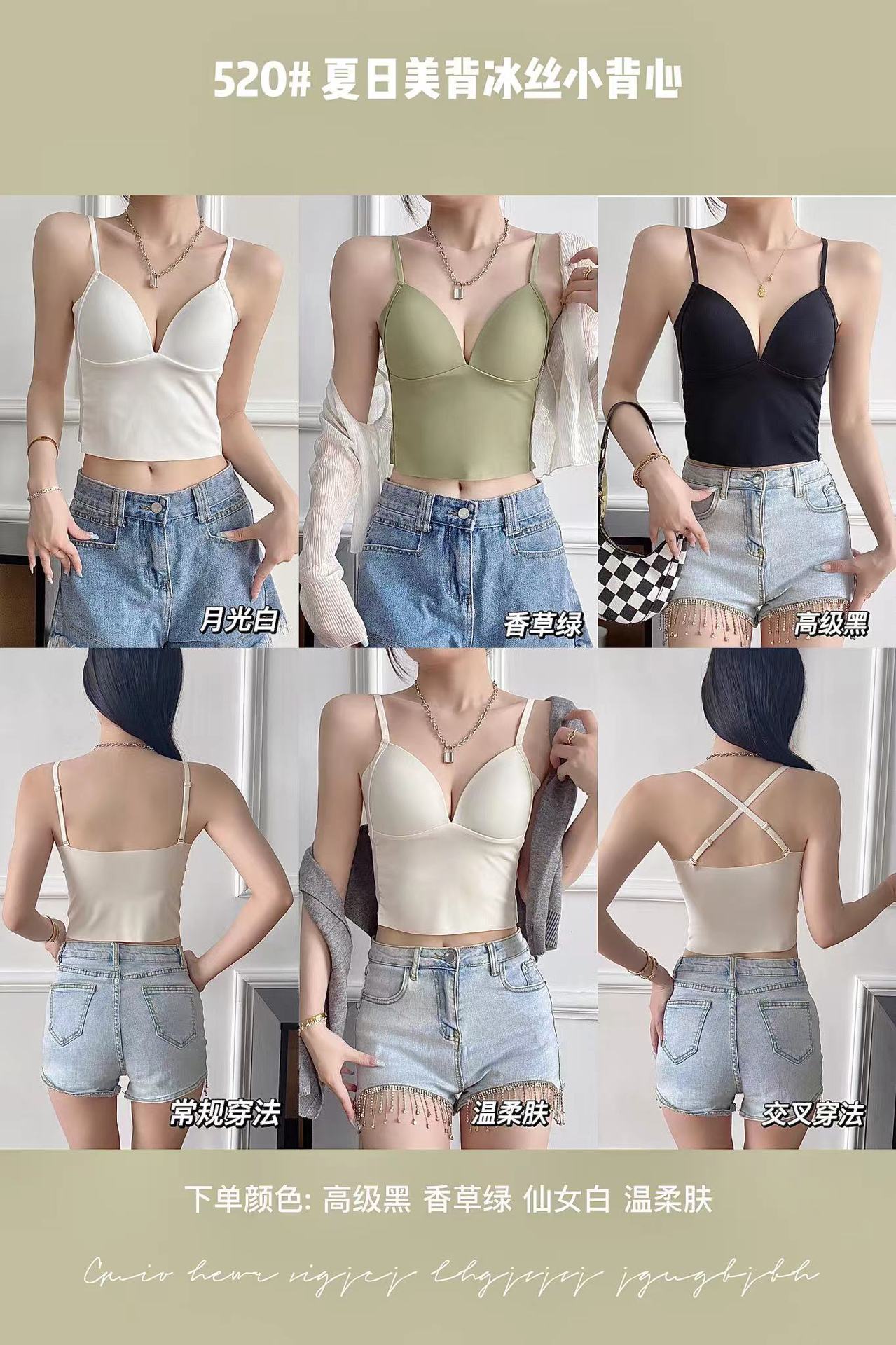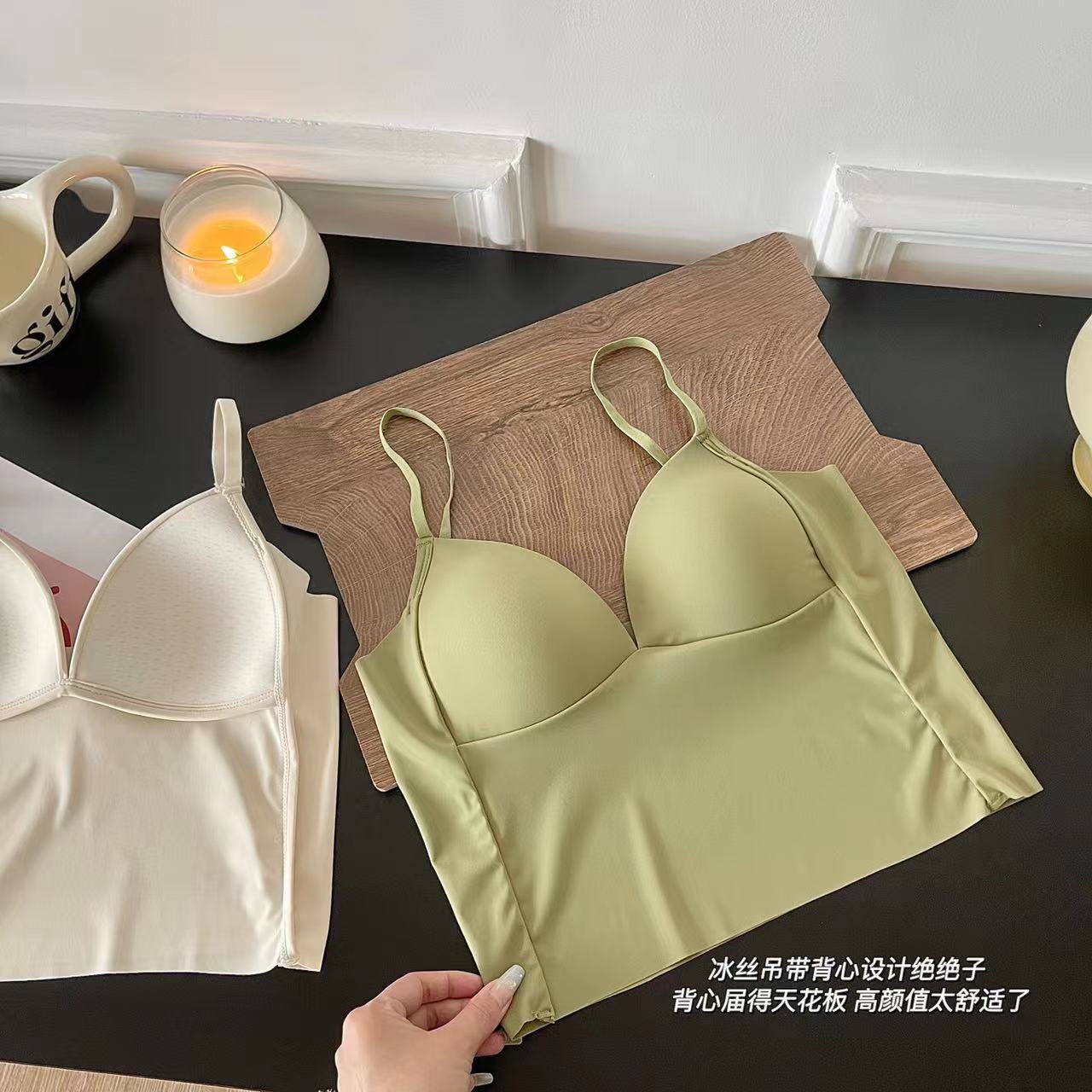 Chaleco pequeño de seda de hielo con copa fija en la espalda, sexy, de verano, sin aros de acero, ropa interior ligera y antideslizamiento para mujer