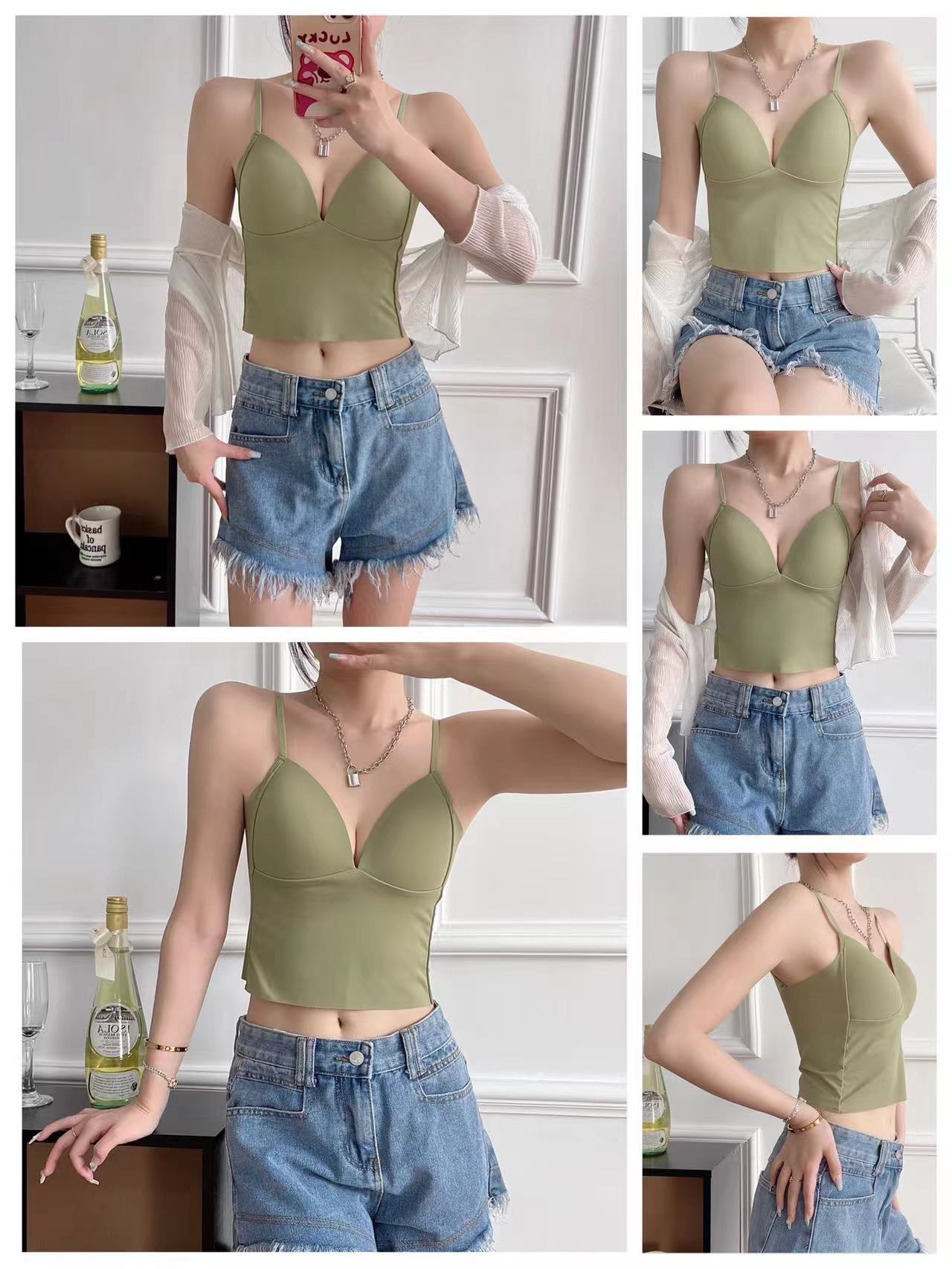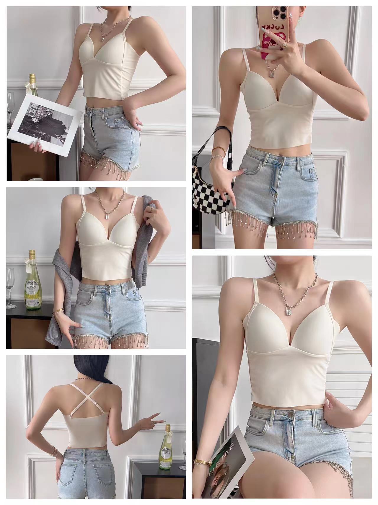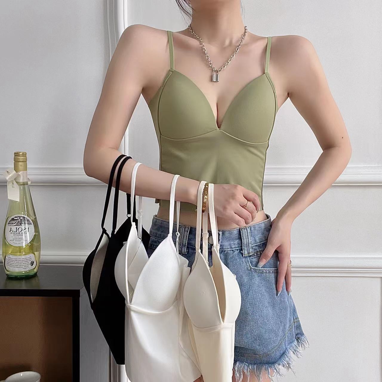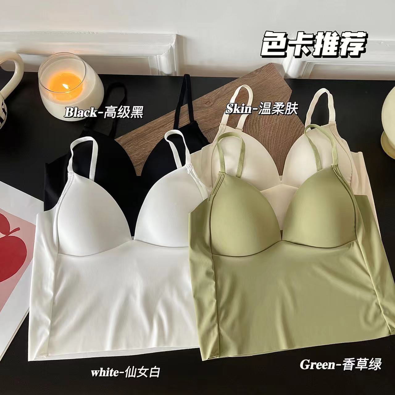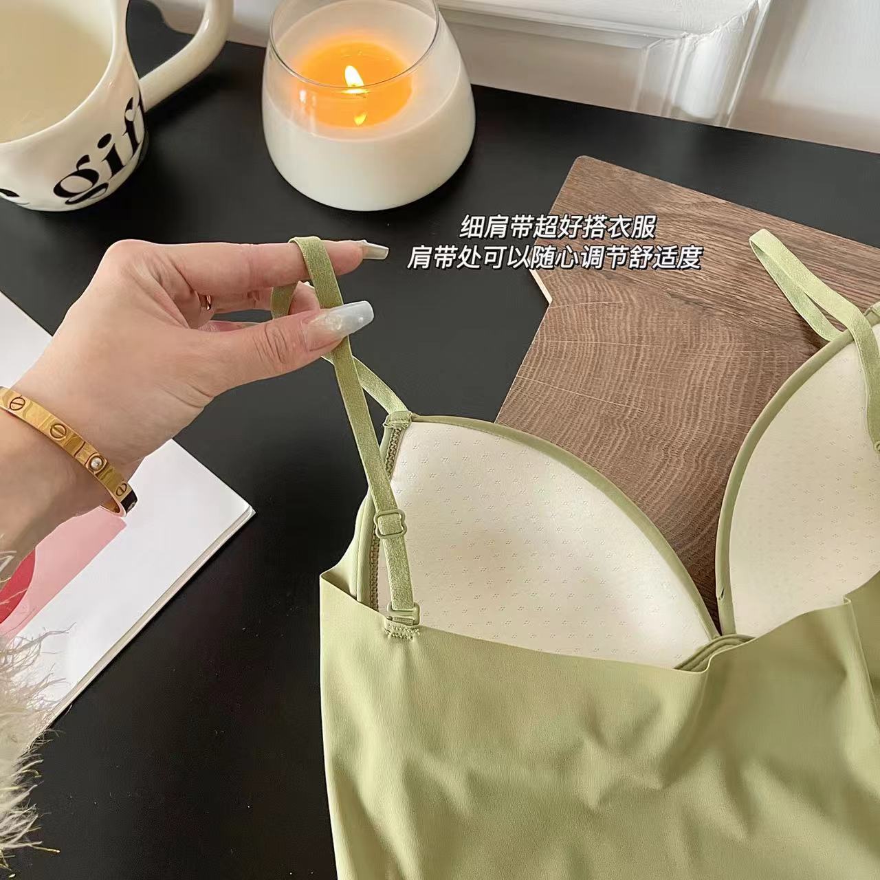 Chaleco pequeño de seda de hielo con copa fija en la espalda, sexy, de verano, sin aros de acero, ropa interior ligera y antideslizamiento para mujer