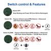 (Encienda el interruptor: Repelente de animales con flash LED ultrasónico). El sensor infrarrojo pasivo (PIR) detecta movimiento y activa el altavoz ultrasónico, emitiendo un tono invisible que ahuyenta plagas comunes del exterior como perros, gatos, ciervos, mapaches, ratones, zorrillos, ardillas y más. También active el repelente.