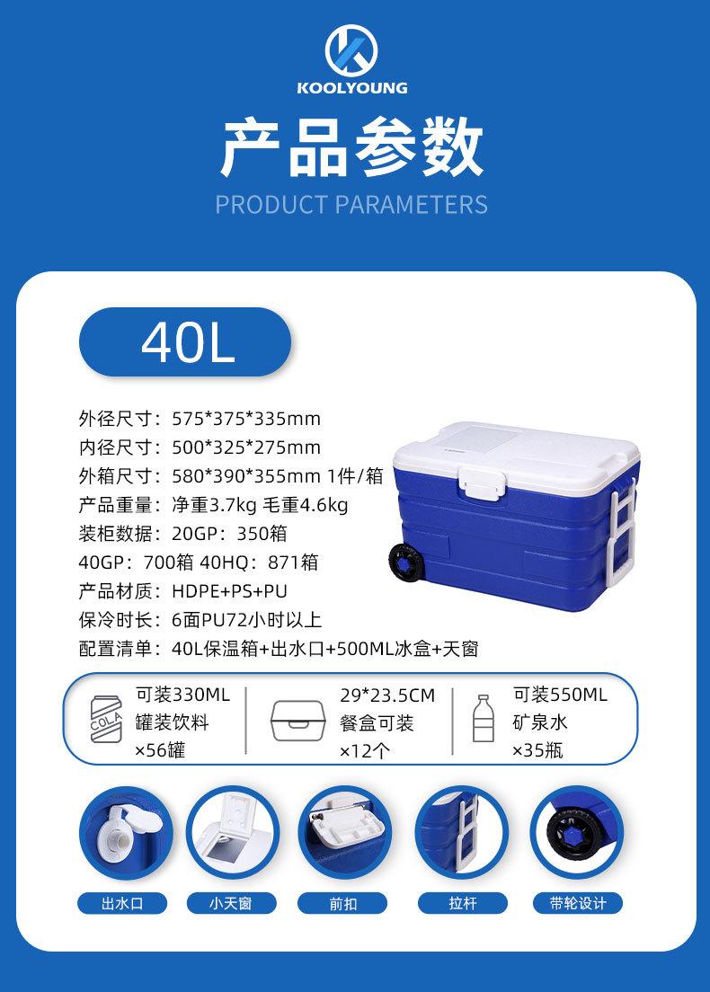 Keyang 40L Caja de Transporte de Cadena de Frío para Mariscos para Pesca Marítima y Pesca de Roca con Ruedas, Caja Refrigerada para Arrastrar, Herramienta de Entrega de Cadena de Frío