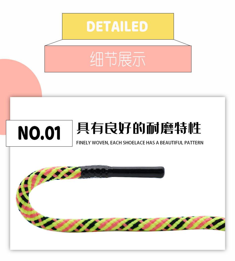 Three-color round shoelaces, Multicolor woven, fashion retro, versatile personality