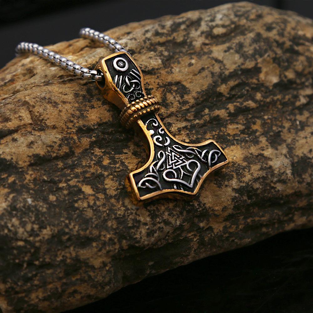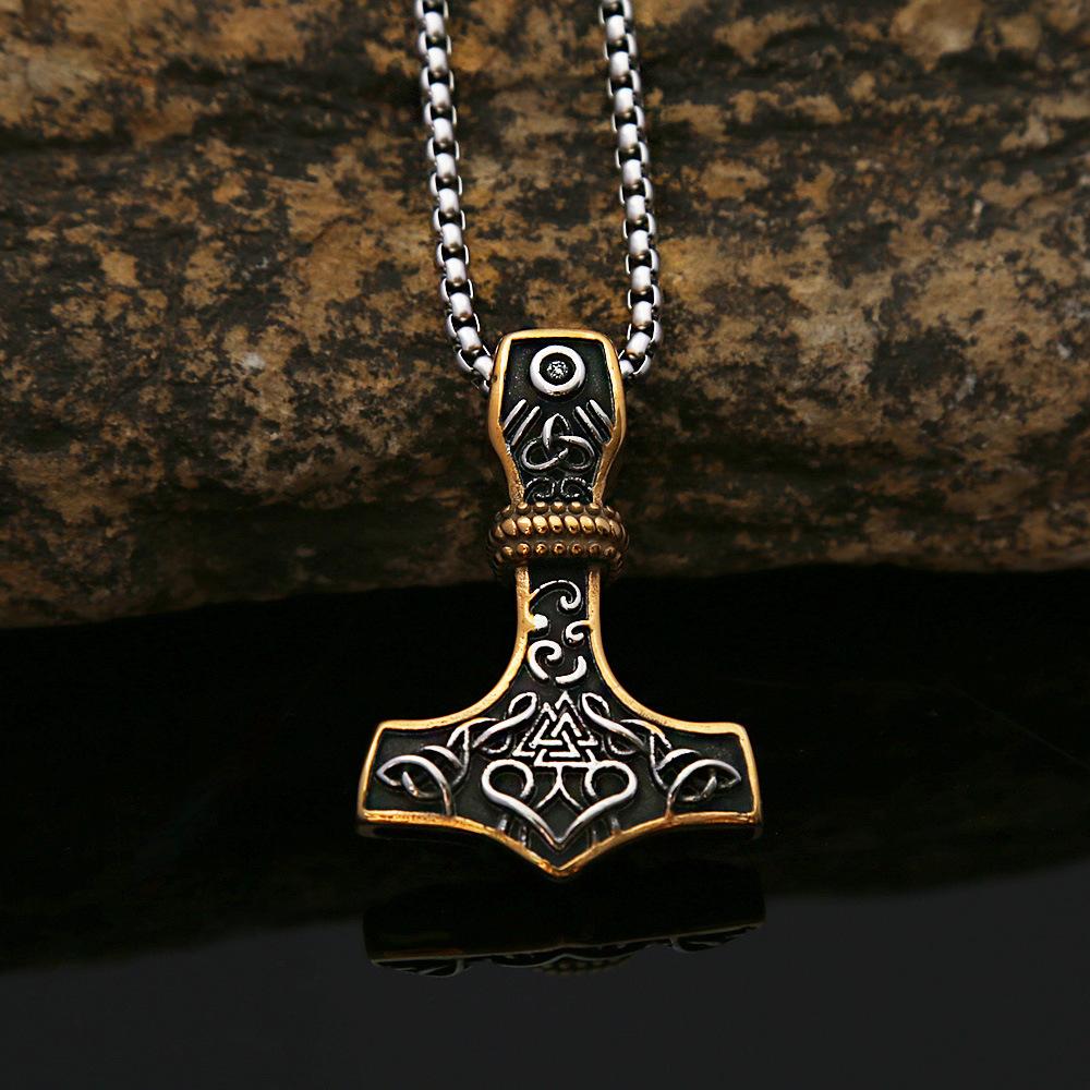 Nuevo colgante nórdico de acero inoxidable con martillo de Thor, runa triangular vikinga, martillo vintage, collar de acero de titanio para hombres y mujeres, joyería