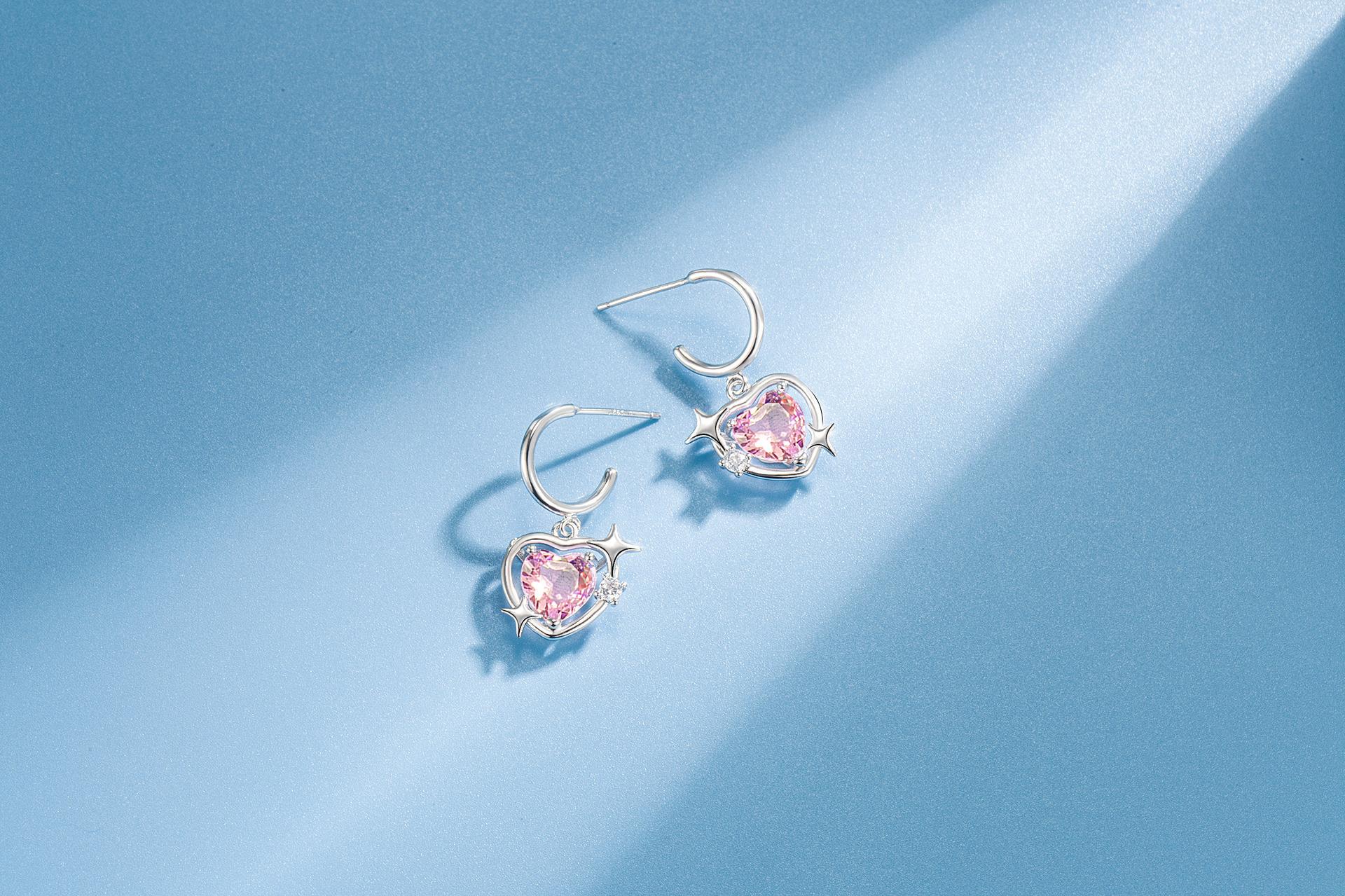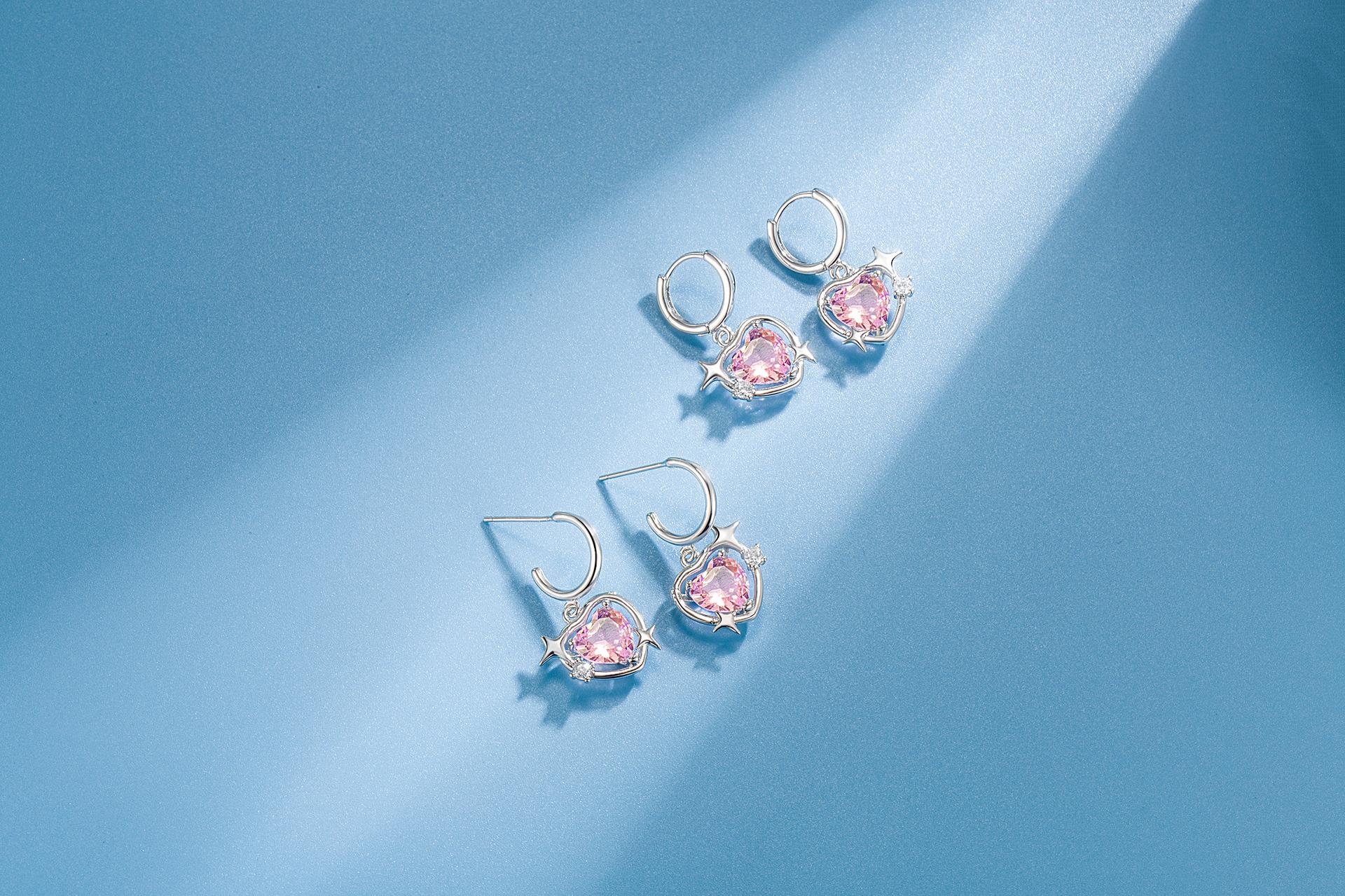 Pink Love earrings (ear studs), Pink Love earrings (ear button)