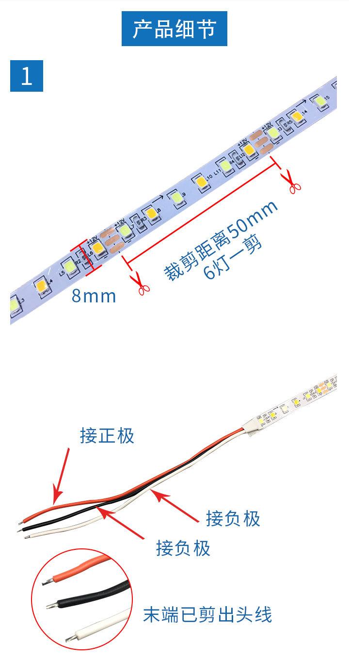 Tira de luz LED de dos colores con temperatura de color 12V2835, tira de luz suave de 120 luces, blanco frío, blanco cálido, tira de luz de dos colores, tira de luz ajustable