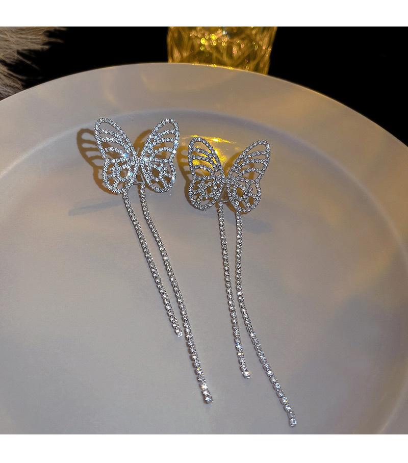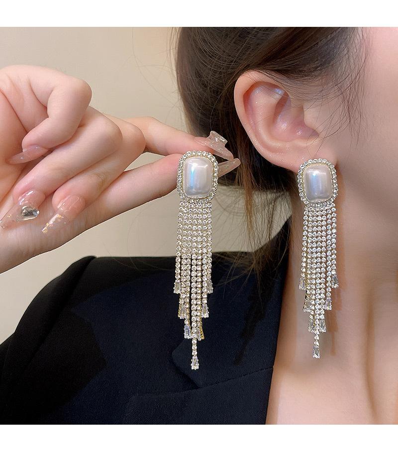 Pendientes largos con borlas y diamantes exquisitos de aguja de plata 925 para mujer, modernos, ligeros, de lujo, de nicho, de celebridades de Internet europeas y americanas, joyería para las orejas