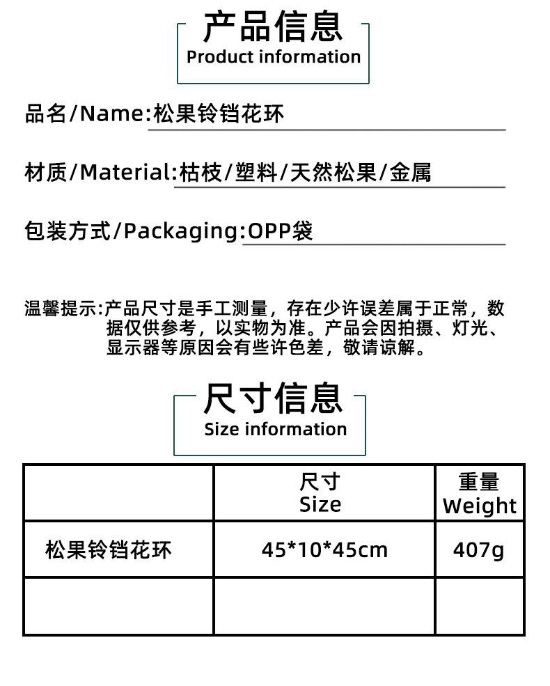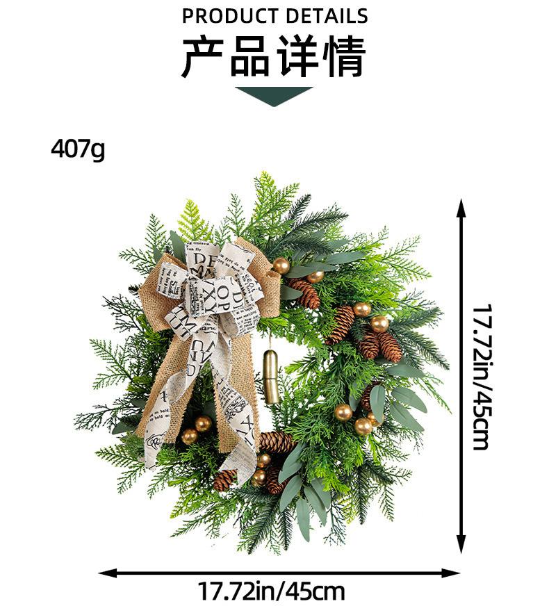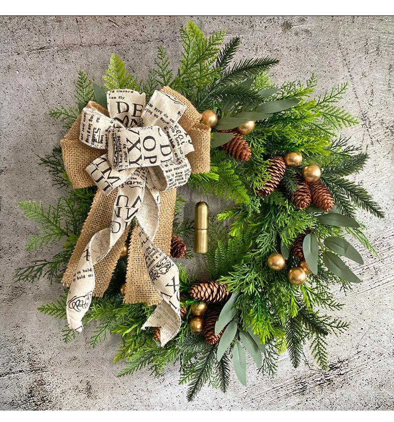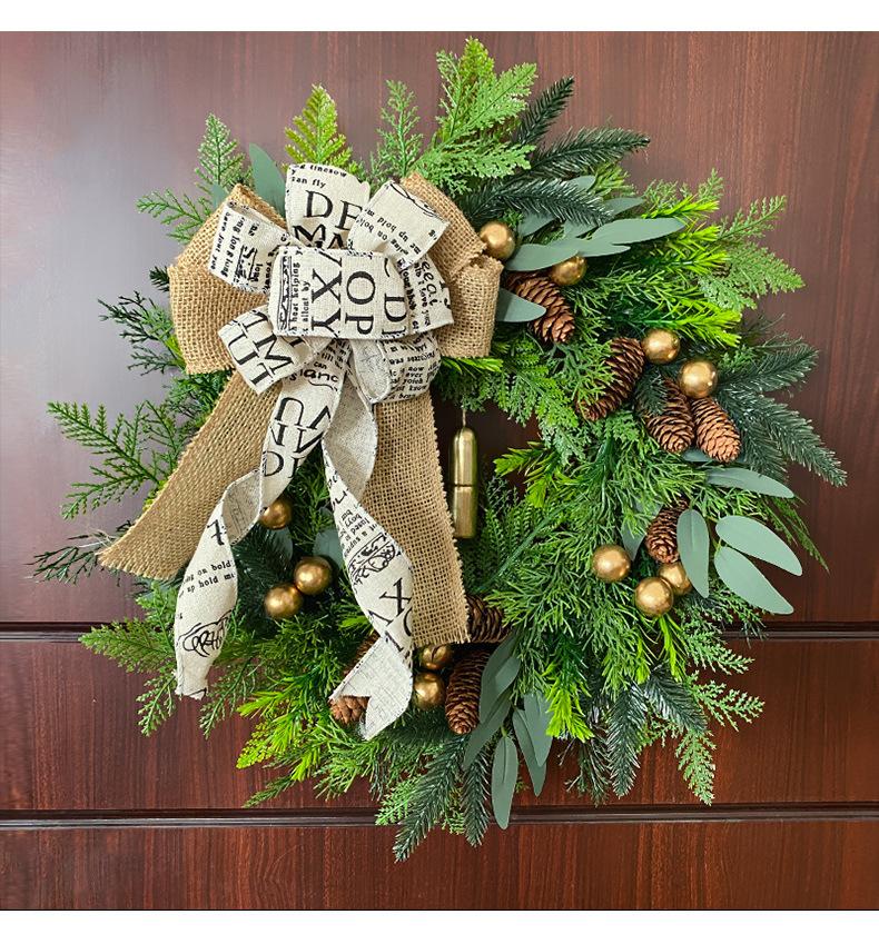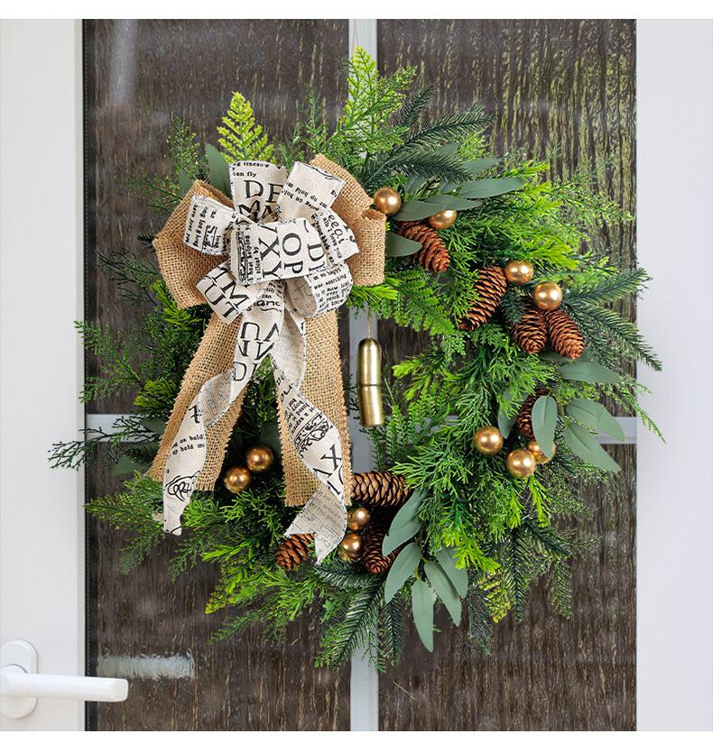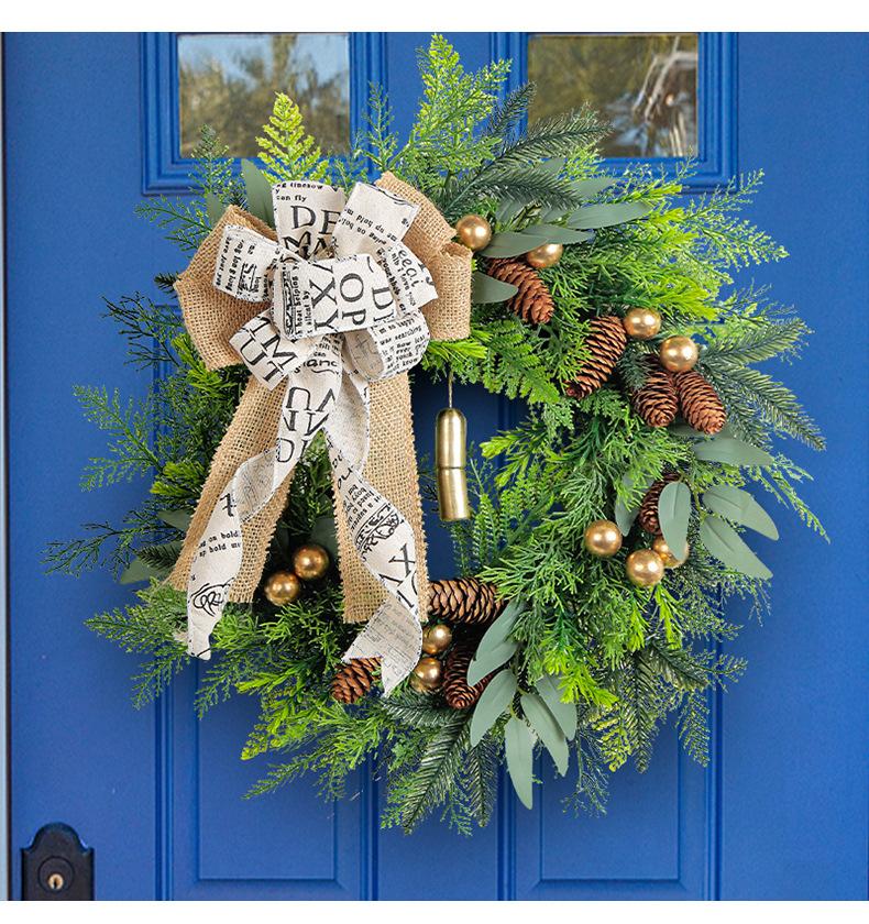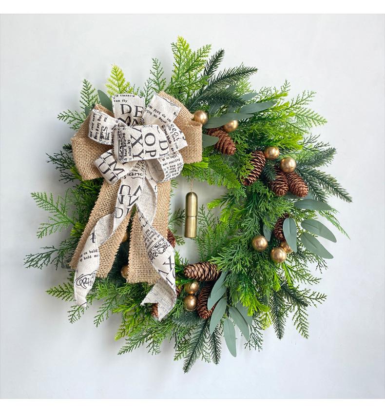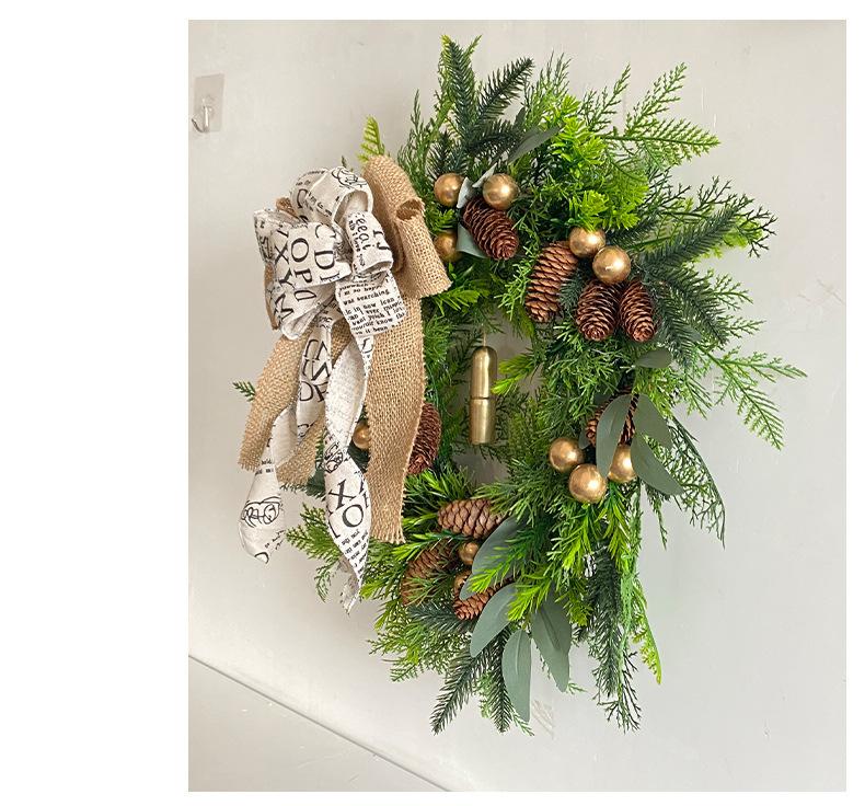Estación independiente transfronteriza de Jingchen, corona navideña de piñas, campana, puerta navideña, corona campestre, decoración navideña