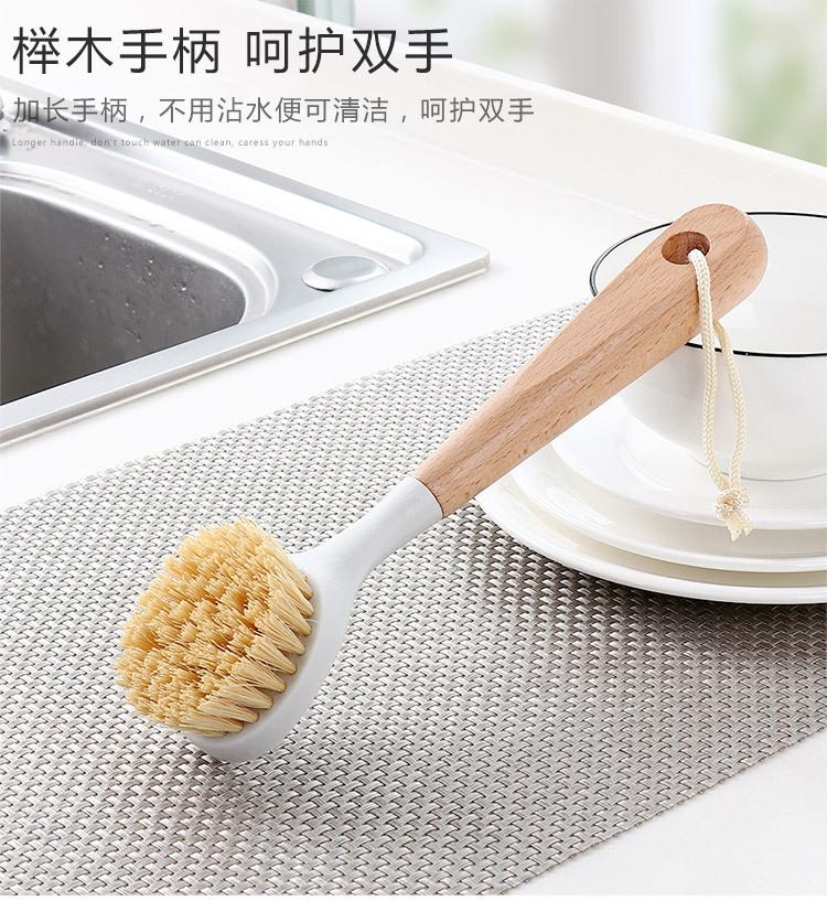 Cepillo para Ollas de Sisal Mango de Madera Cepillo para Lavar Ollas Multifuncional Mango Largo Cepillo para Ollas de Limpieza de Cocina Cepillo para Ollas Libre de Aceite Cepillo para Ollas Platos Tazones
