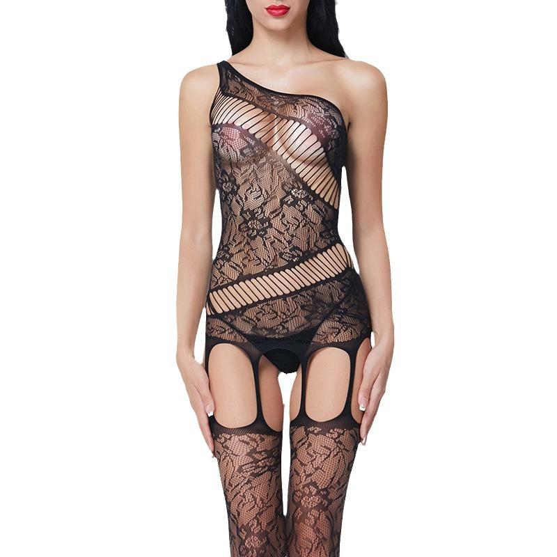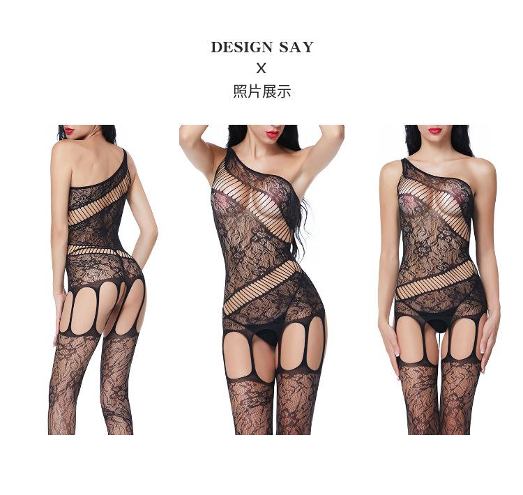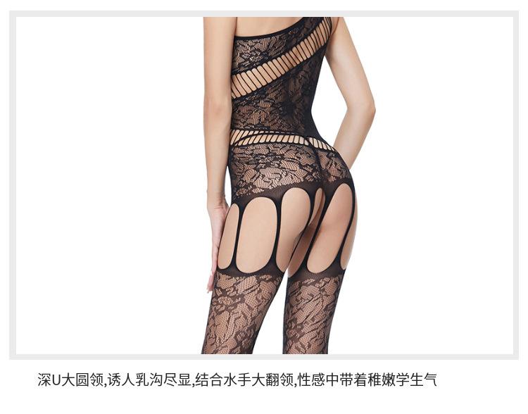 Falda de cadera hueca de línea halter sexy de comercio exterior de alta gama, sexy, pura, quiero ver a través de las medias de una pieza de tentación jacquard